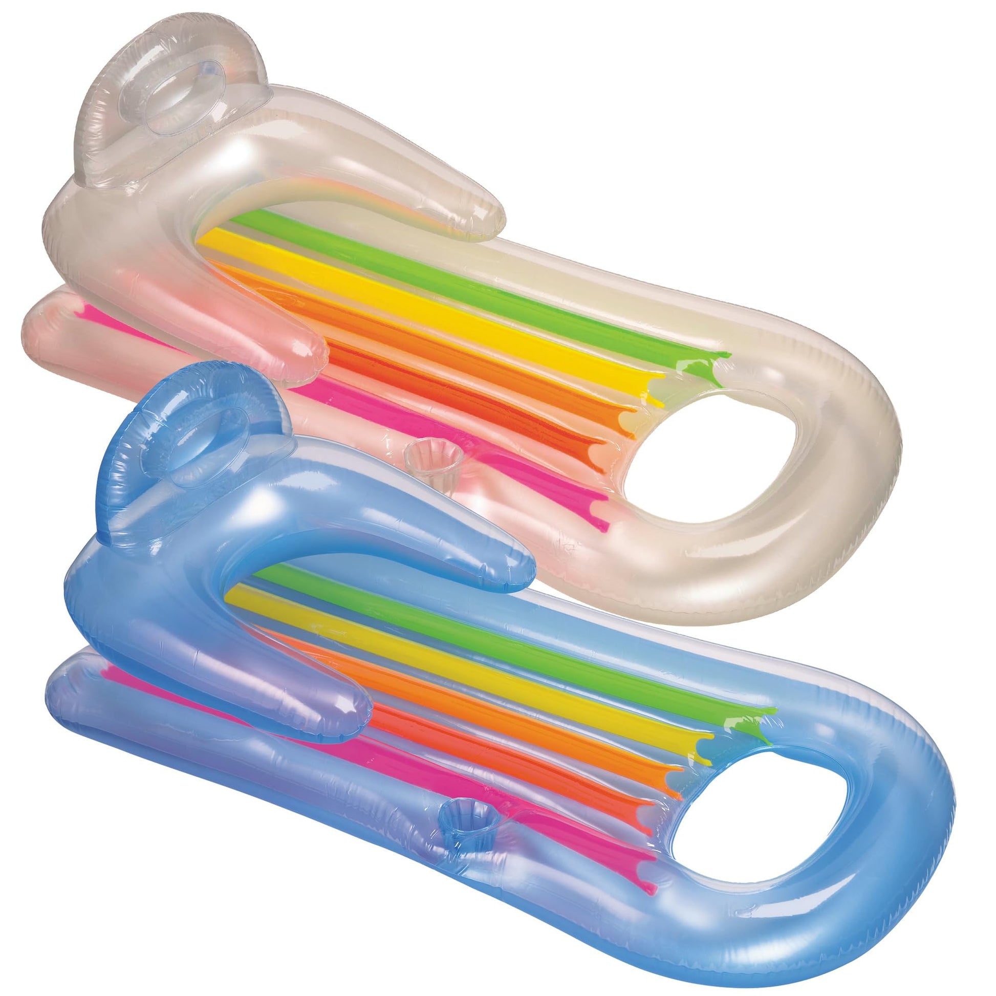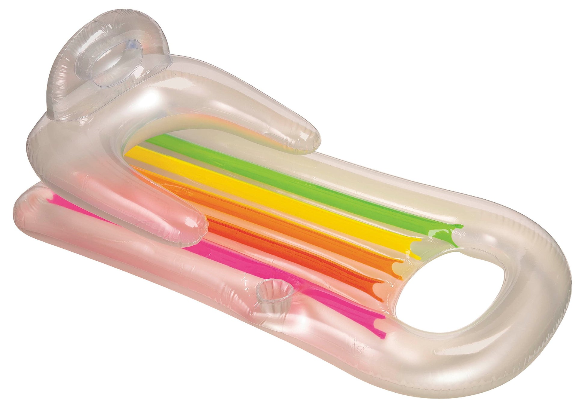 The classic Intex 58802EP Inflatable King Kool Swimming Pool Lounge Raft Blue 2-Pack has only gotten better with age. It has a comfortable backrest and armrests for total relaxation and two air chambers for added safety. With the built-in cup holder, you can enjoy a refreshing beverage in the water as you lounge. Approximate deflated size: 63in x 33.5in. Equipped with built-in backrest, armrests and drink holder. Constructed with two air chambers. 220 lb max weight limit.