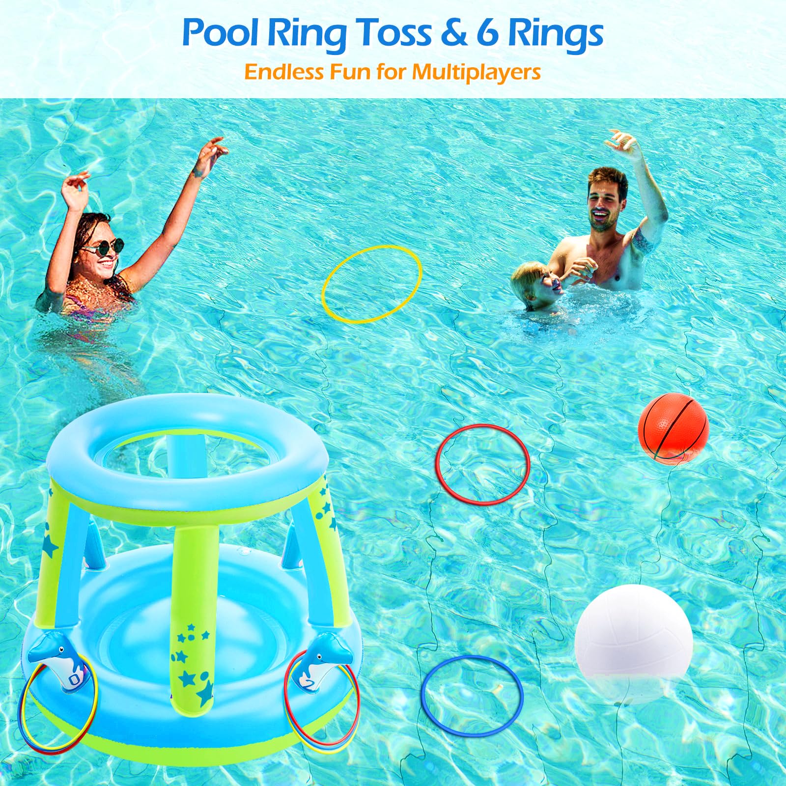 Jasonwell Pool Toys Games Set - 3 in 1 Pool Volleyball Net Basketball Hoop Ring Toss Game Inflatable Floats Water Floating Volle