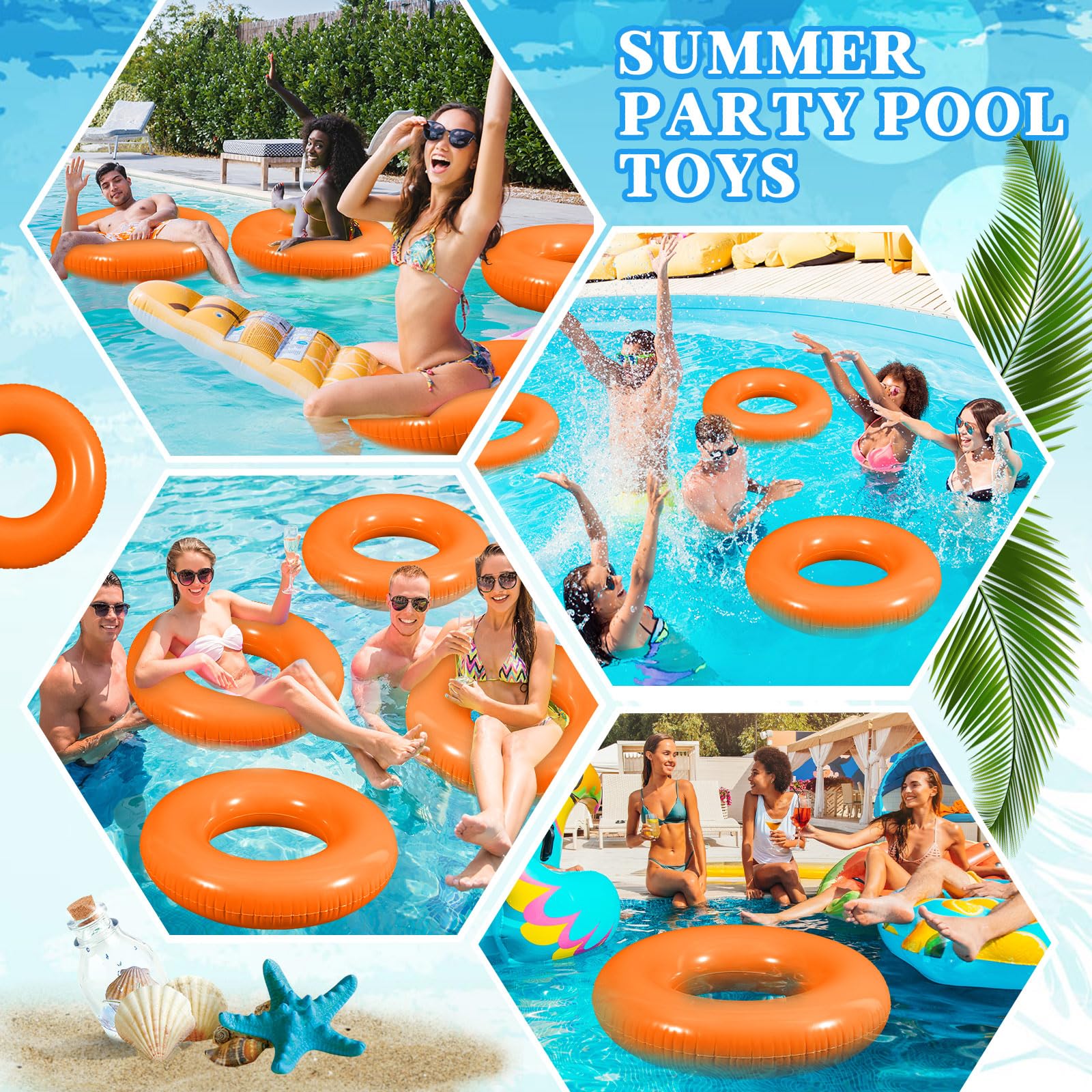 Features: These swimming tubes are designed to let you make the most of your summer happiness in the sun and water. Just inflate them, and you are all set to enjoy a relaxing float in the pool or a thrilling water fight. Not only is the inflatable ring float an ideal favor for your summer themed party, but it also qualifies as a thoughtful gift. Whether you choose to gift it for a birthday, a farewell, or other occasions, your recipient will surely appreciate the thought behind it. Specifications: Material: PVC Color: orange Size: an outer diameter of about 28 inches/ 70 cm and an inner diameter of 10.2 inches/ 26 cm Package includes: 6 x Swimming pool rings Notes: Manual measurement, please allow slight errors on size. The color may exist a slight difference due to different screen displays. The pump is not included.