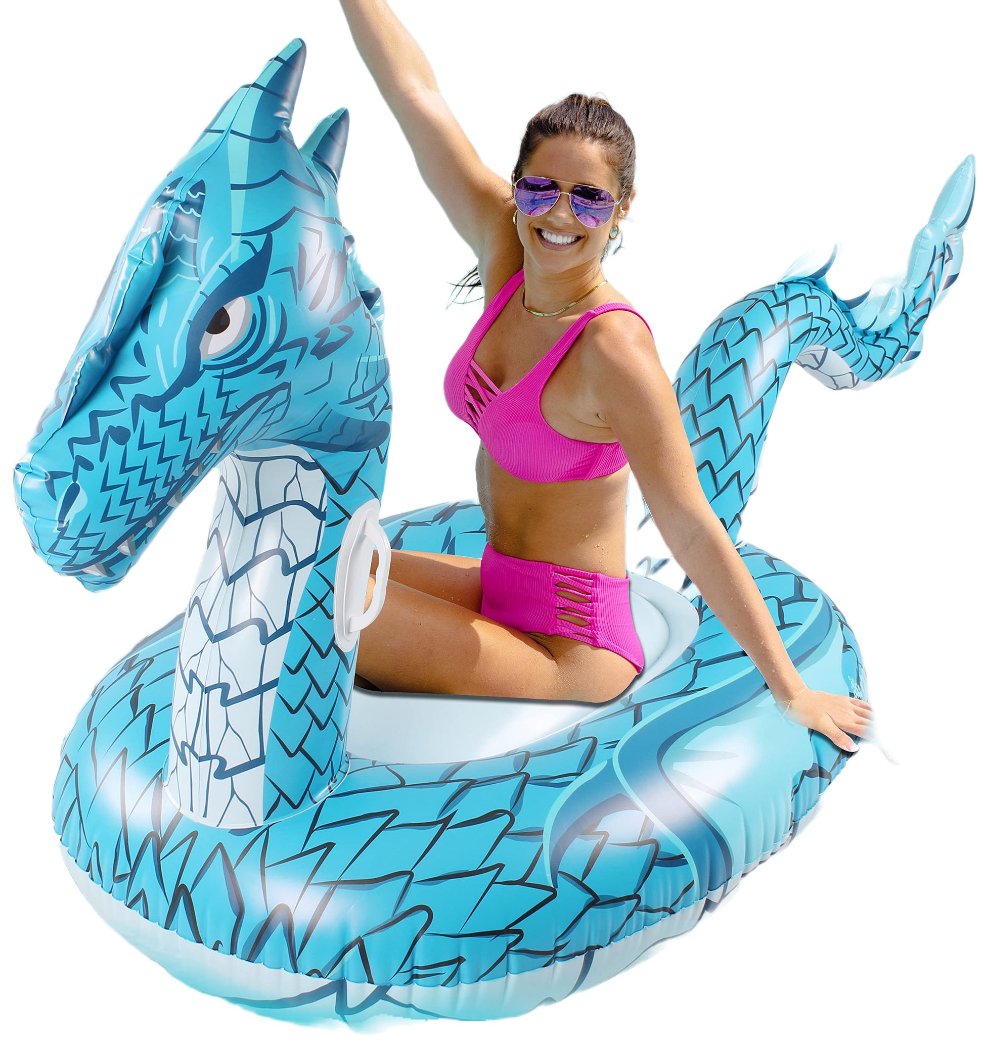 View compareMonsoon [Dragon] Inflatable Pool Floats For Adults Large Ride-On Swimming Pool Float Floatie With Handles - Blue