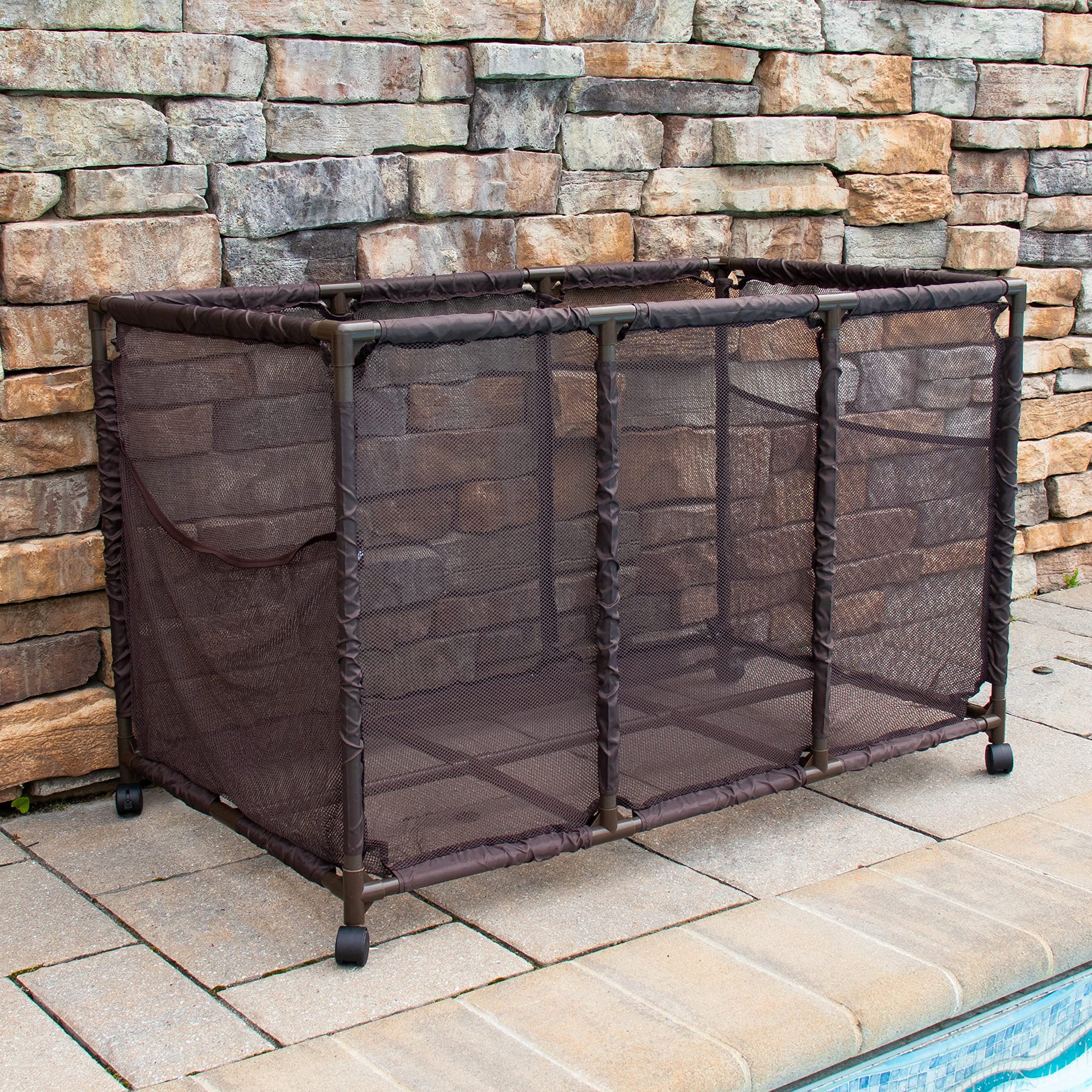 Pool Bins Pool Noodles Holder, Toys, Balls, Floats and Equipment Mesh Rolling Storage Organizer Bin, Kids Height, Large (25'' L x 43'' W x 28'' H), Brown