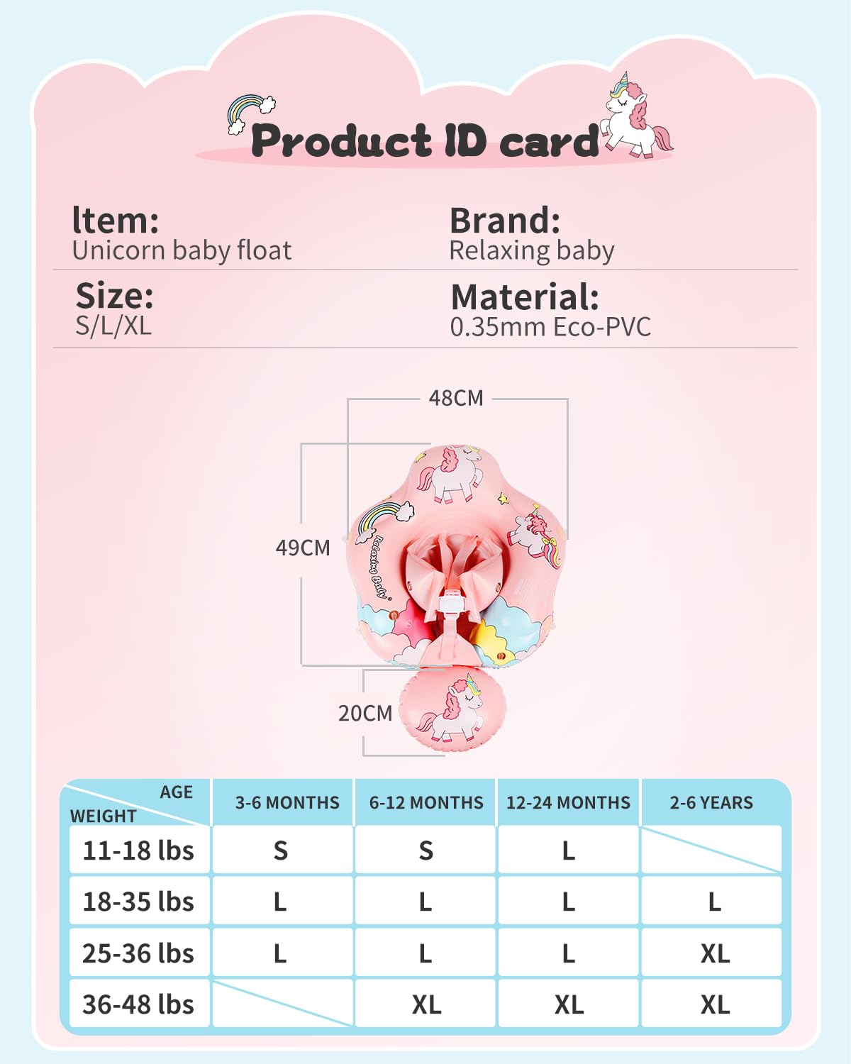 • Q: What safety features does the Relaxing Baby Float have? A: The float includes high-quality shoulder covers, a safety crotch support, and an adjustable follower airbag that enhances safety and comfort for your baby while swimming.