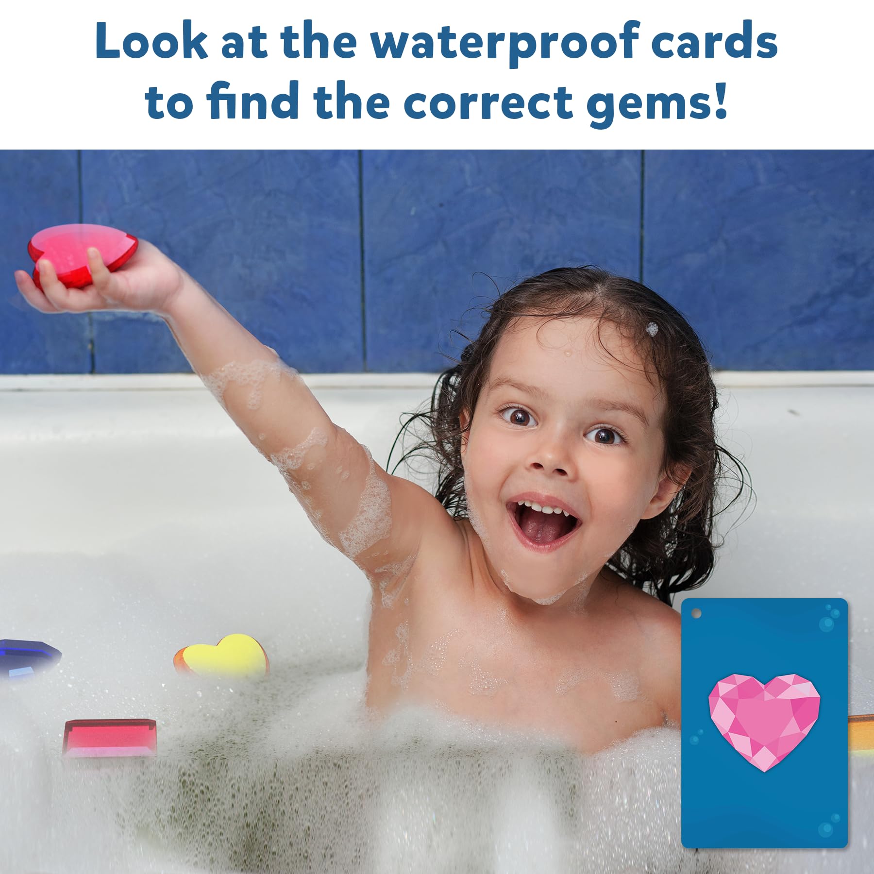 Seek & Splash Junior is an exciting search & find game for your child to enjoy in their splash pad or bathtub! Remember what's on the card and search and find the correct gems underwater!