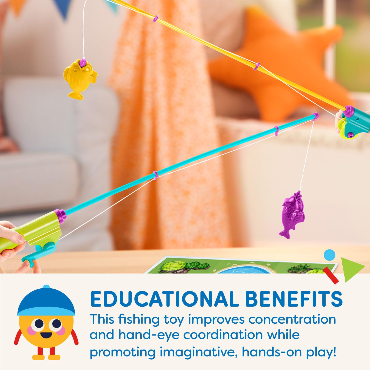 That's one colorful catch!reel in the fun with battats magnetic fishing set! The magnetic toy fishing pole feels like the real thing, and is easy for little hands to grasp. Have a magnetic fishing game and catch all 4 colorful fish. Invite your friends for your first official fishing trip. The rod's magnet attracts all the fishes and kids enjoy reeling them out of the water, just like the real thing! This awesome beach toy and summer toy is perfect for introducing little ones to fishing. The fishing rods are made of strong and sturdy plastic and the wind-up reels are easy to turn. This magnetic fishing set improves confidence, accuracy, fine motor skills and hand-eye coordination; promotes imaginative, hands-on play activities. With the bright colors and the attention to details, This set of fishing toys is a must-have for outdoor play.