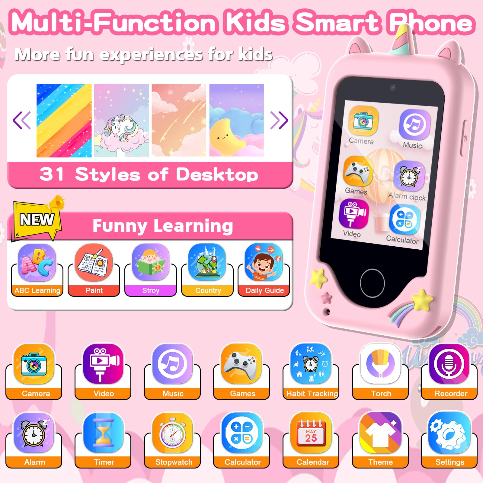 Kids Phone for Girls, Toys for 3-10 Year Old Boys Girls Christmas Birthday Gifts for Kids, Touchscreen Toddler Smartphone Learni