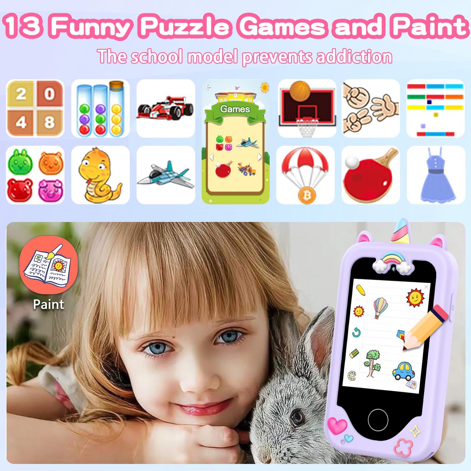 Kids Toy Smartphone A Good Electronic Learning Toys and Gifts for Kids Age 3-7 Years Old 5 year old girl birthday gift ideas Easy to use for kids --- 2.8 inch IPS Touch Screen The kids toy phone equipped with a 2.8 inch IPS touch screen which is very easy to use for toddler kids age 3-7 years old. And you don't need to worry about your kids calling the wrong number by mistake. (No phone call function)