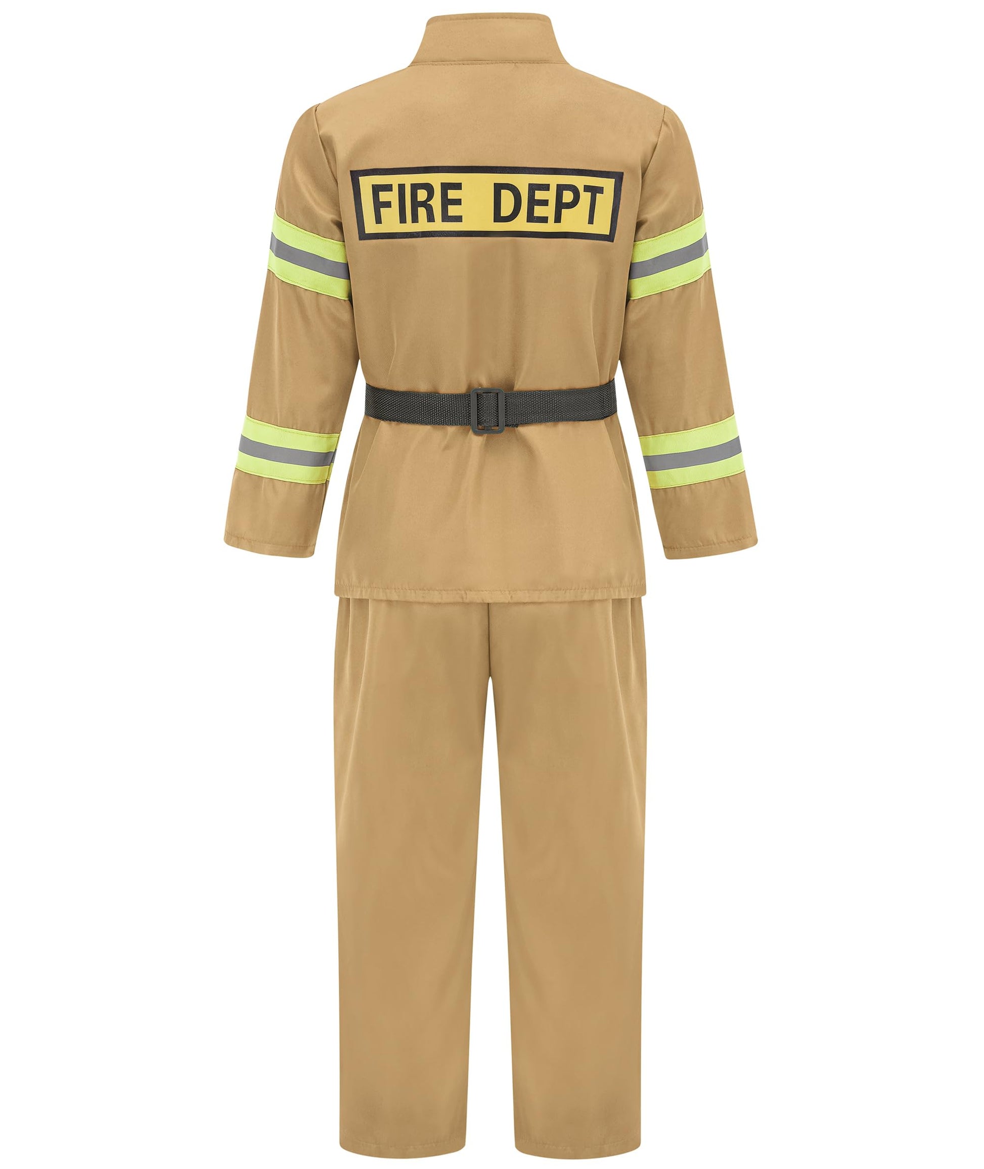 FIREFIGHTER COSTUME FOR KIDS:This vibrant firefighter jacket with reflective stripes and matching hat instantly turn your kids into a brave firefighter. This firefighter outfit included fire extinguisher prop and complete accessories | 10 PIECES FIREFIGHTER COSTUME SET: Includes a firefighter jacket, pair of pants, belt, helmet, axe, flashlight, toy extinguisher, wrench, compass and walkie-talkie.The fire extinguisher can shoot real water | MATERIAL:This kids firefighter costume made from polyester materials to ensure safety and durability. This fireman's uniform is easy to care for and clean. It's lightweight so you can wear this fireman suit indoors or outdoors | OCCASIONS: This firefighter costume suitable for Firer Chief Role Pretend Play, Career Day, Children's Day, School Stage Performance, Birthday Party, Halloween, Trick or treat outfit, Christmas and every day play gear | CAREER COSTUME FOR KIDS: This child's fire fighter costume is a great gift for any firefighter loving kid. It's an interesting Halloween costume for kids career day themed costume role play costume dress-up set