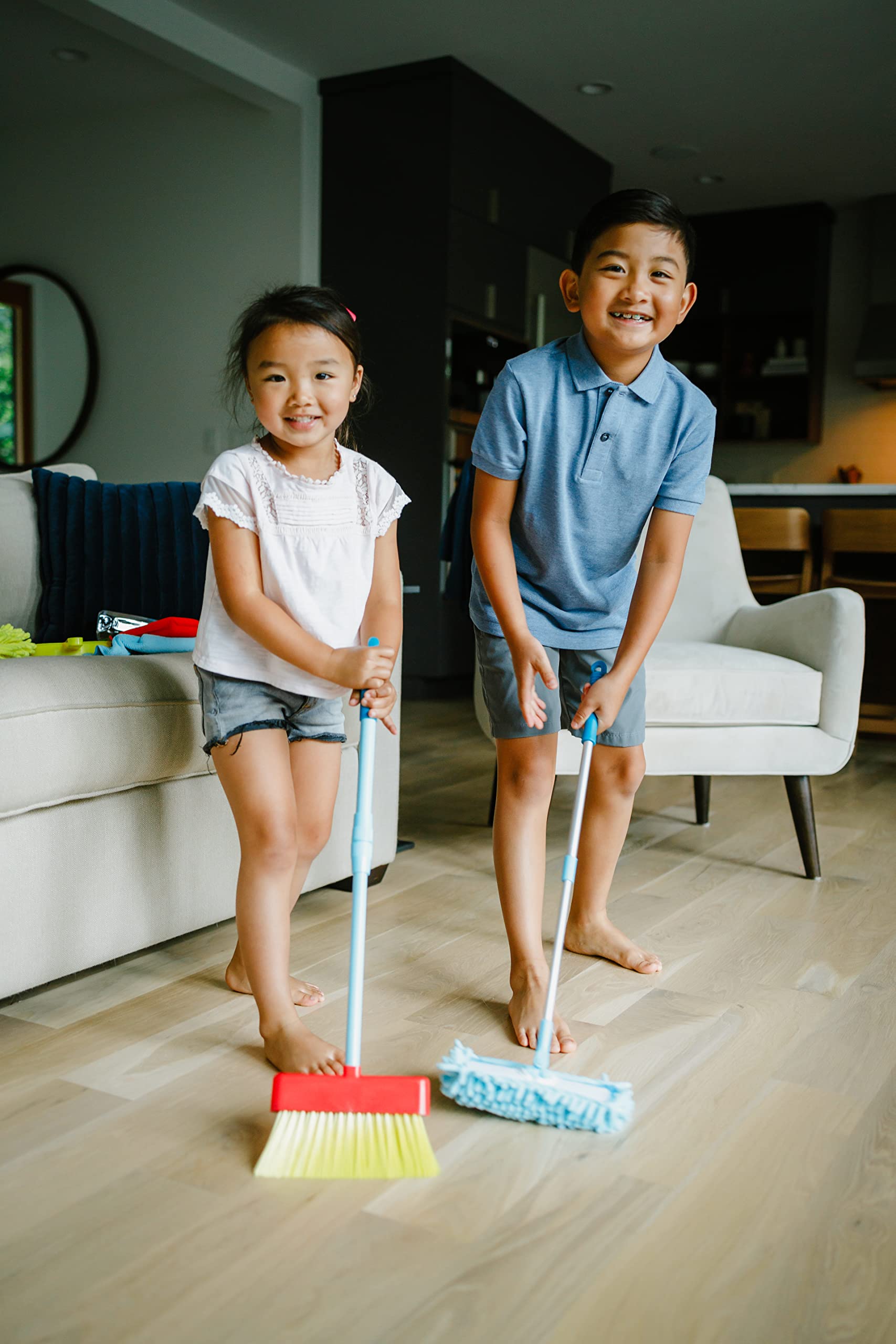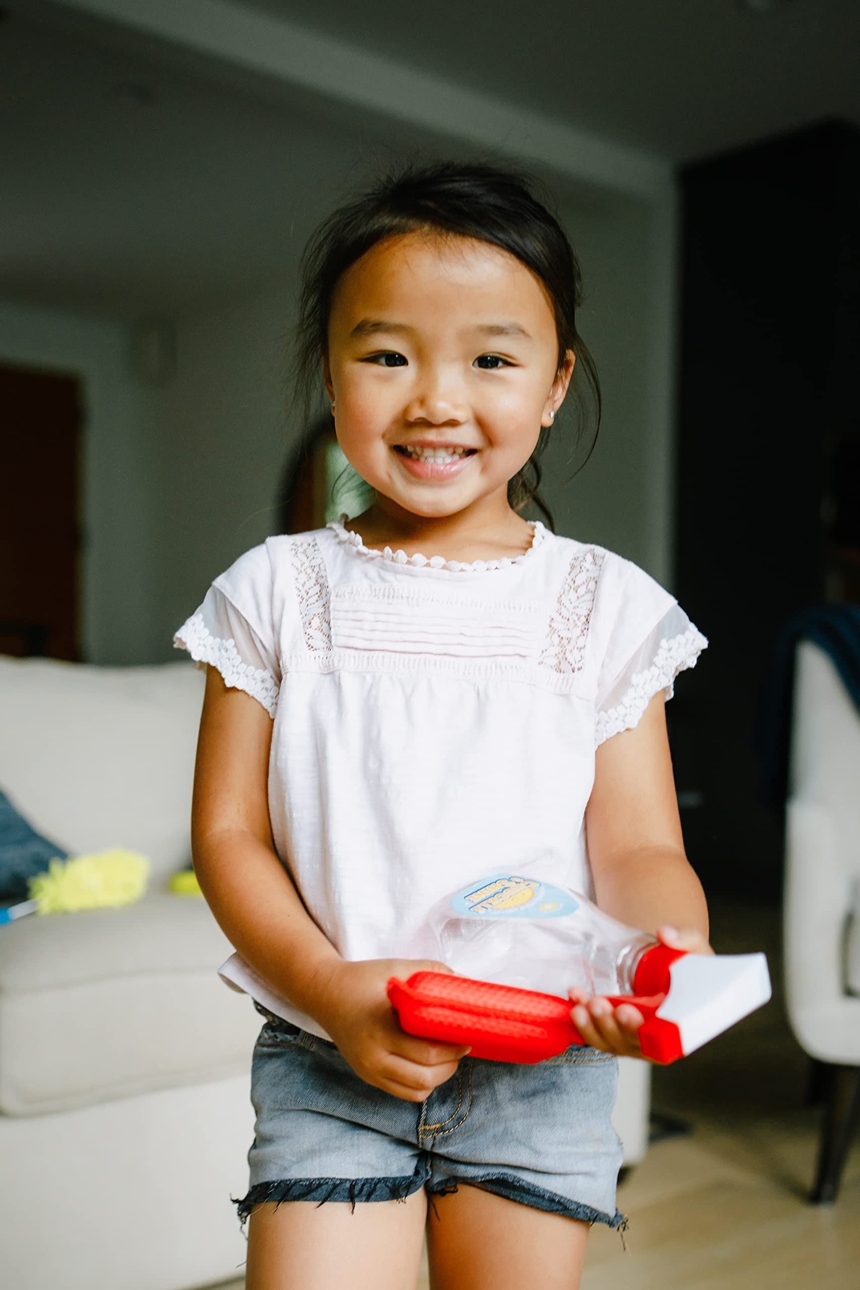 'Become a lean, mean cleaning machine! The Lil Helper Cleaning Set includes a Broom, Mop, Duster, Dust Pan, Spray Bottle, Cleaning Cloth, and Sponge - everything needed to keep tidy like a grownup! With real world looks and extendable handles, this set will remain perfect for pretend play as your little one grows, and its durable design means these tools won't quit til everything is spick and span!''