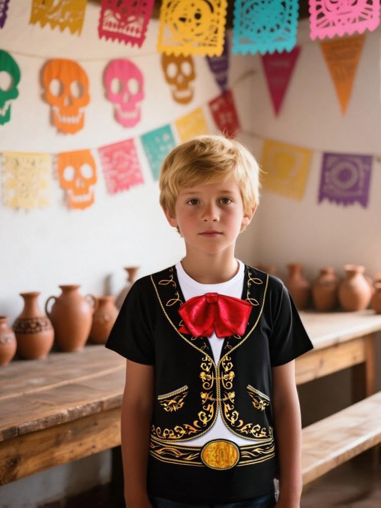 Mariachi costume for kids is suitable for boys aged 5-12. The unique 3D printing creates a realistic suit effect, making it look like wearing a complete mariachi outfit. The vibrant mariachi elements complete with a red bow tie print make this traje de charro para nio a perfect choice for boys who want to celebrate the holiday in style. Mexican outfit for boys is comfortable to wear and easy to care for. Suits for many occasions. Such as party, theme shooting, holiday, dress ups, role play, Cinco de Mayo, fiesta mexicana, Halloween, and so on. Perfect match with charro sombrero. Let your kids stand out in the crowd with this charro outfit for boys. This is the first choice as a gift for the Halloween and Cinco de Mayo