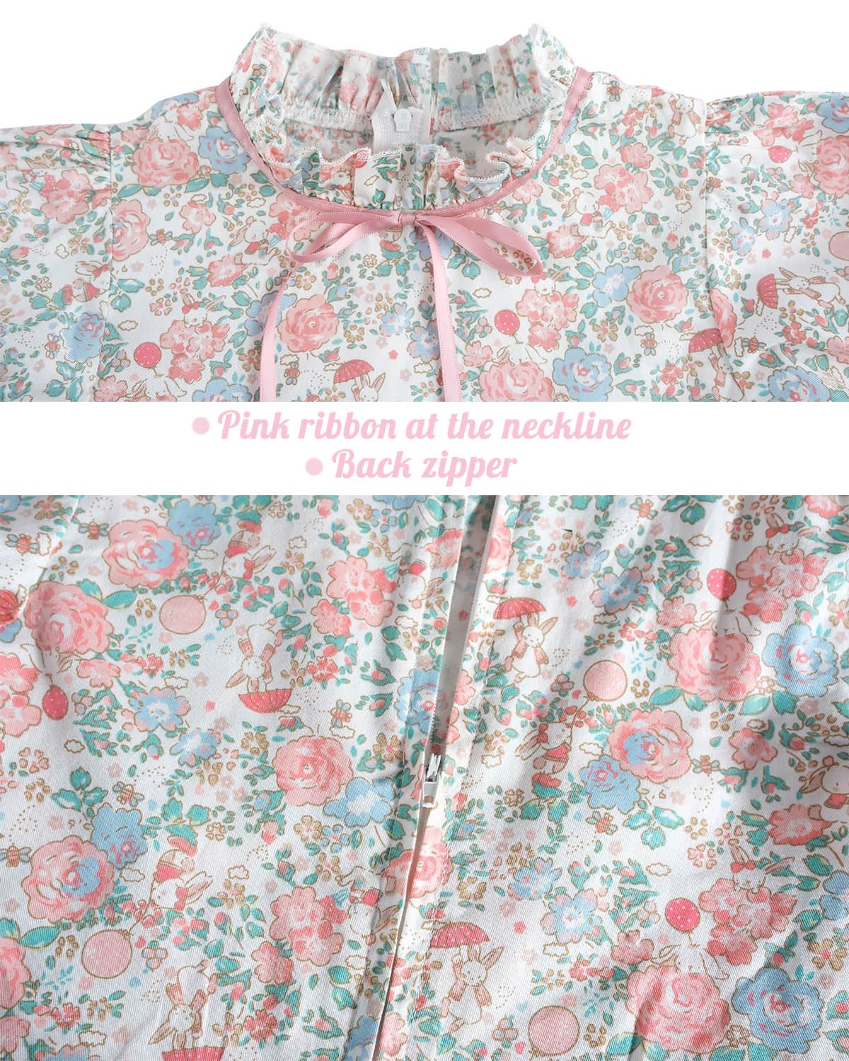 ?Style?The girl's colonial dress has a ruffled standing collar, embellished with a pink ribbon, which is more suitable for your sweetheart.The apron has pockets, back zipper. | ?Material?The prairie costume is made of premium hibiscus linen fabric, which is comfortable and breathable. Elastic cuffs and bubble sleeves make it more lovely. | ?Package?Girls pioneer dress including 3 pieces:floral dress *1; ruffled apron *1; colonial hat *1. | ?Occasion?The girls prairie dress suit for Pioneer Days, Field Trip, school presentation, gardening dress, pilgrim, 1800s historical farm, Halloween costume and etc. | ?Size? Please carefully refer to the size chart before purchasing (not Amazon size chart).