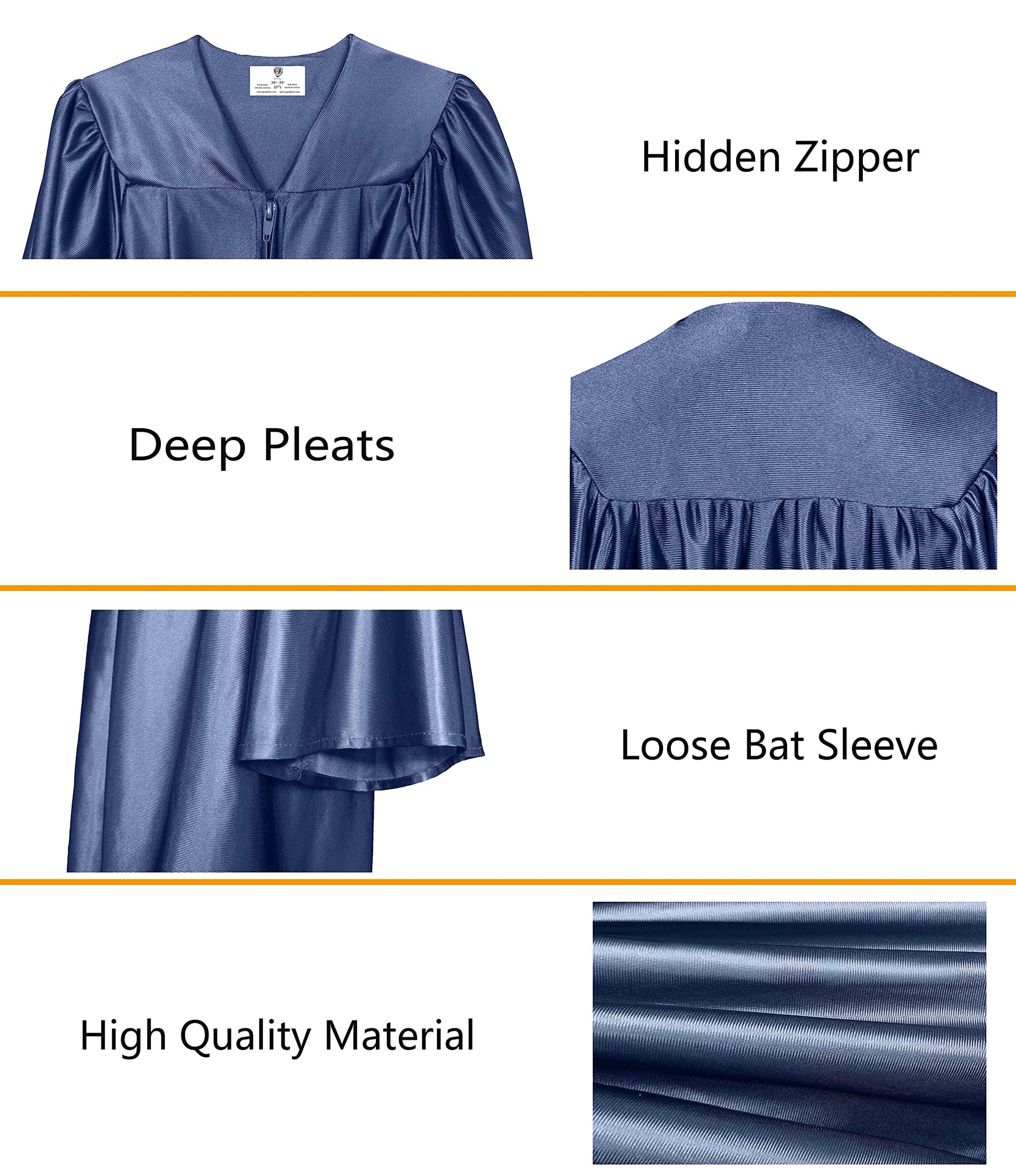 GradPlaza Shiny Choir Robe Kindergarten Preschool Graduation Gown Shiny Graduation Gown for Kids Navy Size 27
