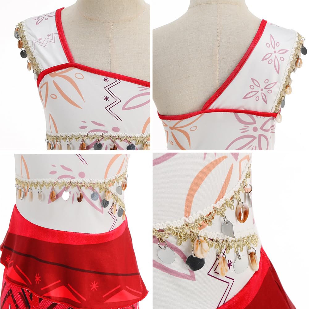 Your princess will just like female lead in the movie wears with adventure dress, Sleeve edge and bodice chest are embossed with sequins and shell decorations, skirt with tassel fringe hem. Unique one shoulder pullover style ocean adventure outfit, is easy take on and off. | This dress crafted from premium, stretchable polyester fabric, is as comfortable as it is charming for every ocean explorer. The soft materials and thoughtful design ensure that your child can enjoy their day in style with this dress up set. | With its luxurious design and attention to detail, this dress is more than just a garment, it's a sophisticated piece that can be the focal point of any nautical-themed celebration or the highlight of a special occasion closet. | The ocean adventure costume dress is perfect for role play, cosplay party, daily wear, ocean themed parties, Halloween cosplay, party event, school play, video shooting,theme party,cosplay costume, performance, playing Game,etc. | The costume dress is suitable for 3-10 years old girls. Package including: 1*dress + 1*necklace + 1*flower clip, designed to be age-appropriate, allowing every ocean explorer to embrace their inner adventurer in style,best gift for your girls.