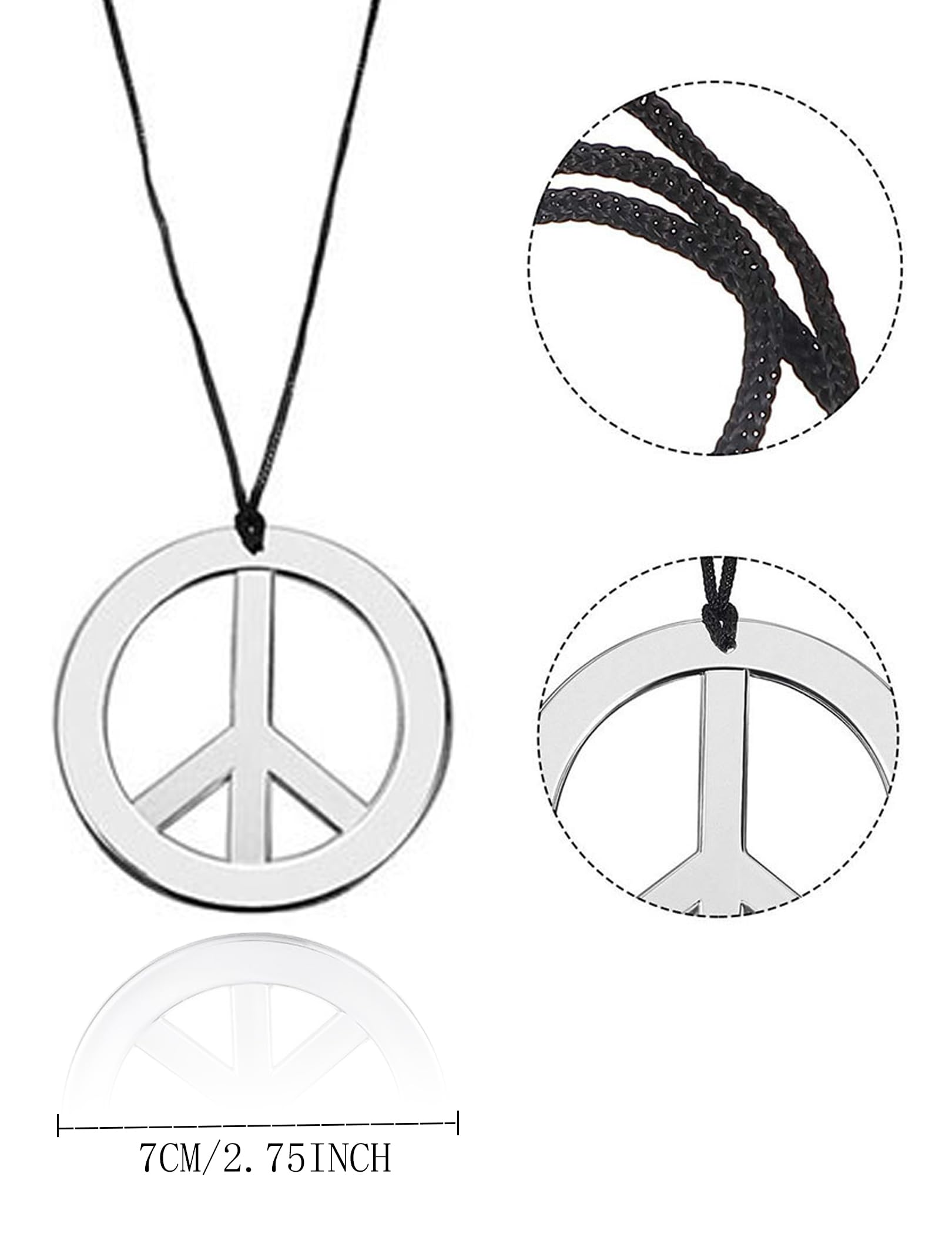 Our hippie costume set is suitable for hippie parties to shown the love to peace, Adjustable design, size fits most boys and kids, comfortable to wear. Package includes: 1 x T-shirt 1 x Sunglasses 1 x Peace sign necklace 1 x Headband