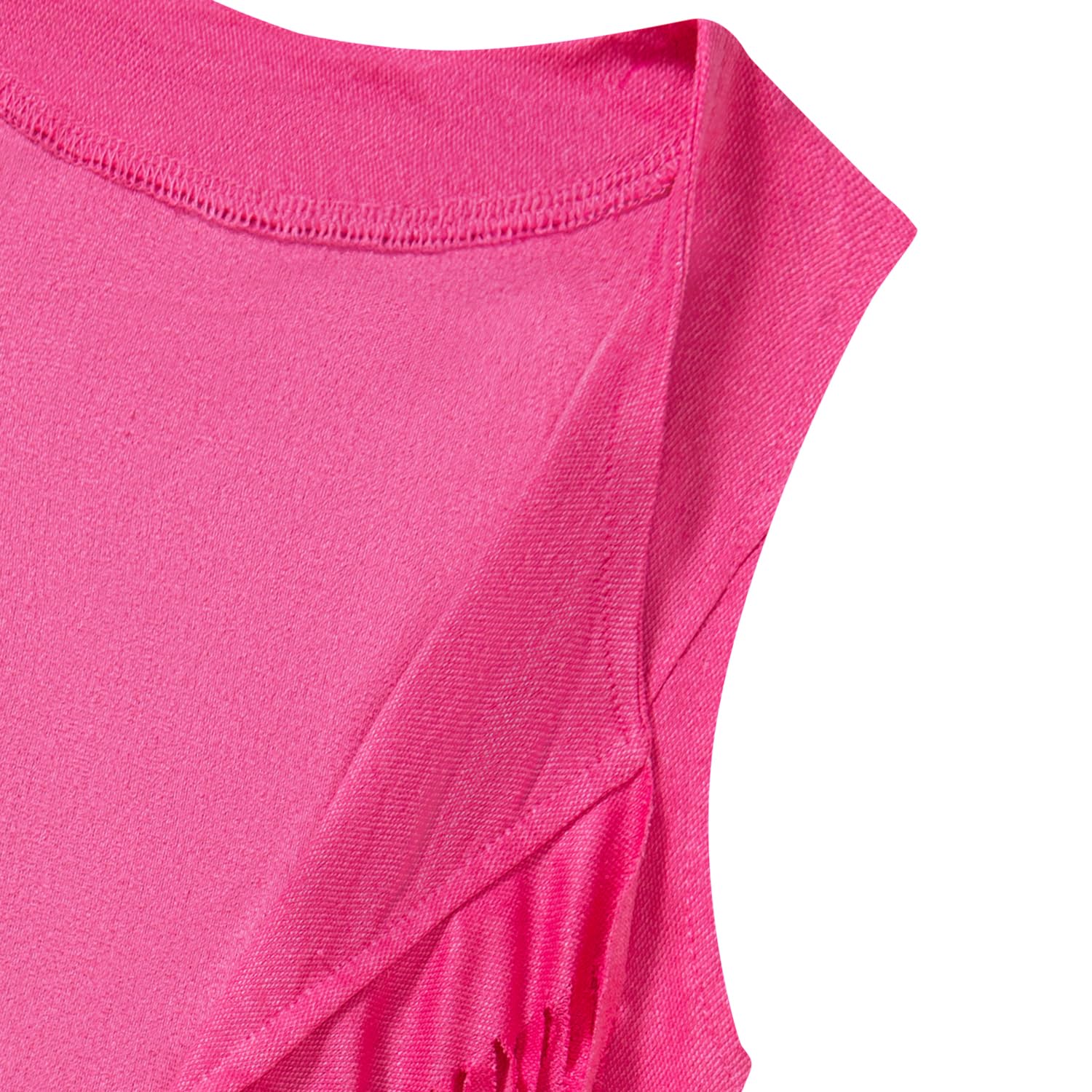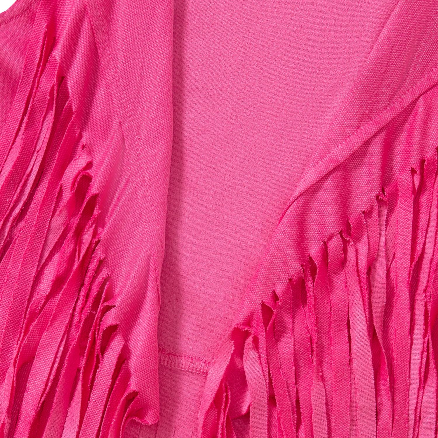IWALUE 60s 70s Outfits Hippie Costume Set Kid Girls Fringe Tassel Vest with Earring Headband Glasses(Pink,10-12 Years)