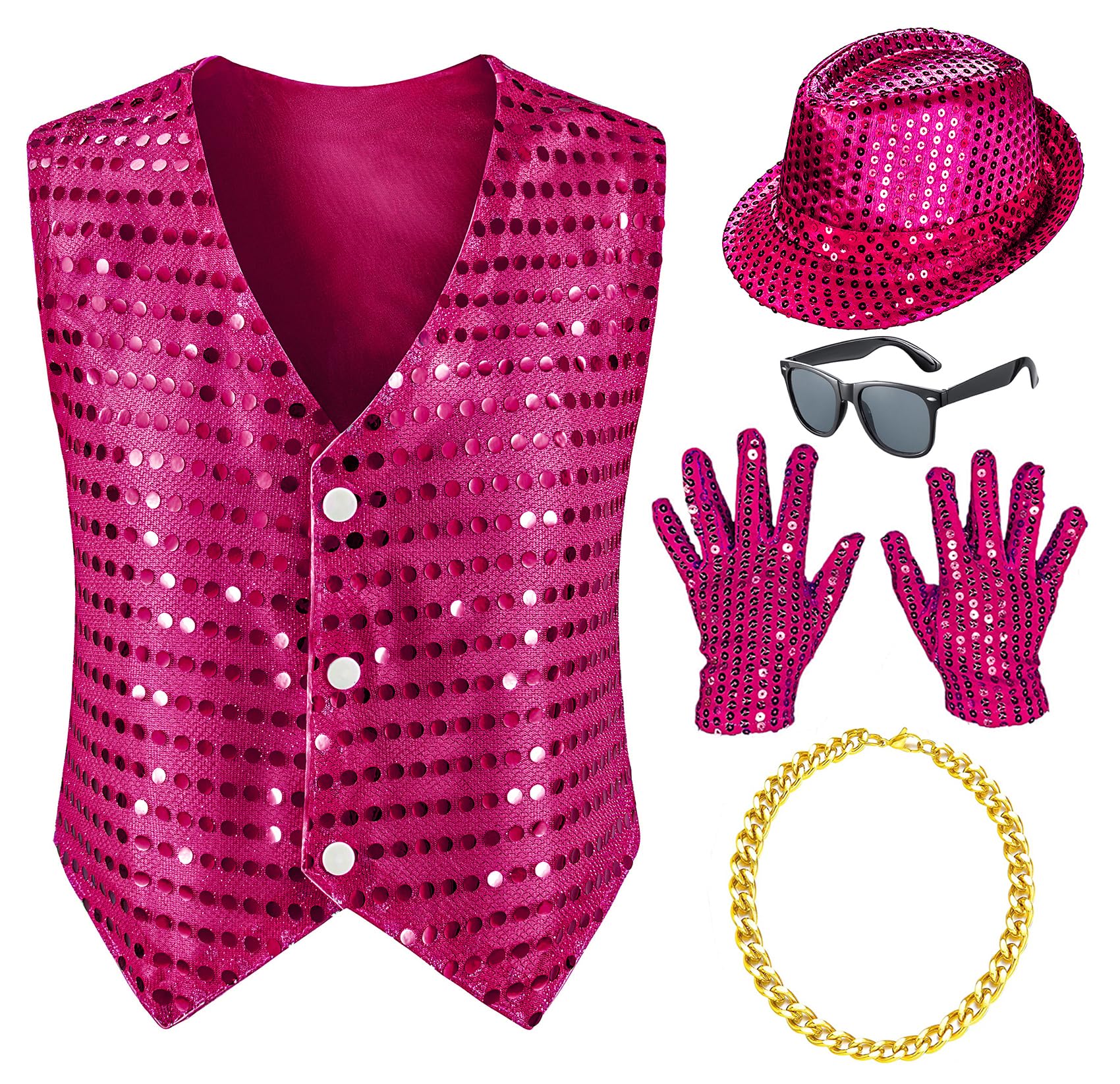 Packaging List:Vest ,Hat ,Sunglasses | Features: Shiny sequin vest and hat,Black glasses,cool dress up. | Size:3-4T; 5-6T; 7-8 Years; 8-9 Years; 9-10 Years;Please refer to the image for detailed dimensional data. | Medieval:Polyester+Glittery Sequin material. | Occasions: Perfect for Hip Hop, Jazz Dance, Street dance, role-playing, Dress up, Musical, school show, stage,school show, photo prop, Birthday, Festival dress-up, Halloween, Christmas cospaly, events, and everyday fun.