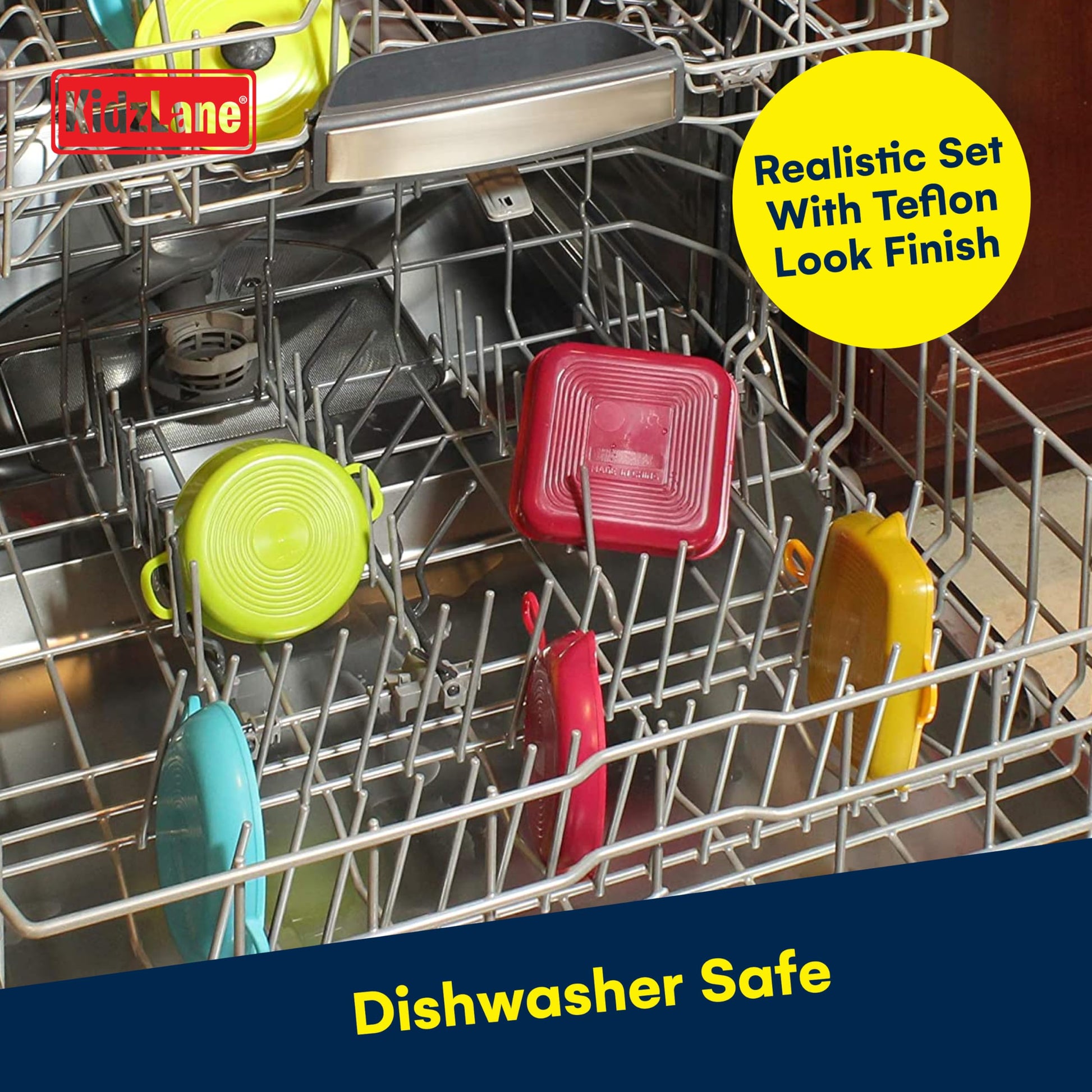 This popular 15 piece tea set by Kidzlane features the classic teapot look in gender-neutral colors that appeal to little boys and girls. Unlike other unusable play tea sets, children can actually use the teapot to pour liquid into their little mugs! So put your chores aside, sit down with your kids, and enjoy a fun little tea party together while theyre still young. Because British or not, a good ol cuppa tea makes everything better. Spark your kids imagination with a playful, non-toxic tea set perfectly sized for young tea enthusiasts! Kids love mimicking the grownups in their life, but its not just childs play. Pretend play encourages kids to interact with their environment, thus developing the social, cognitive and emotional skills that are so fundamental to future learning. Made of high-grade BPA Free plastic material to ensure the utmost safety and quality of this product. The durable construction of this tea set makes it impervious to your childs rough n tumble play. Smooth, rounded lips protect little kids hands and face from accidental cuts. DISHWASHER SAFE Cleanup is easy with this play tea set that can be run through a dishwasher cycle for your convenience.