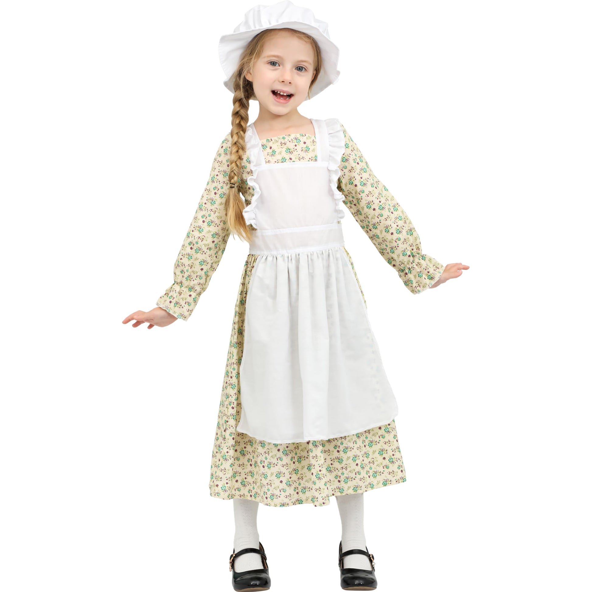 View compareLingway Toys Girls Pioneer Costume,Floral Colonial Prairie Dress for Girls with Apron and Bonnet 10-12