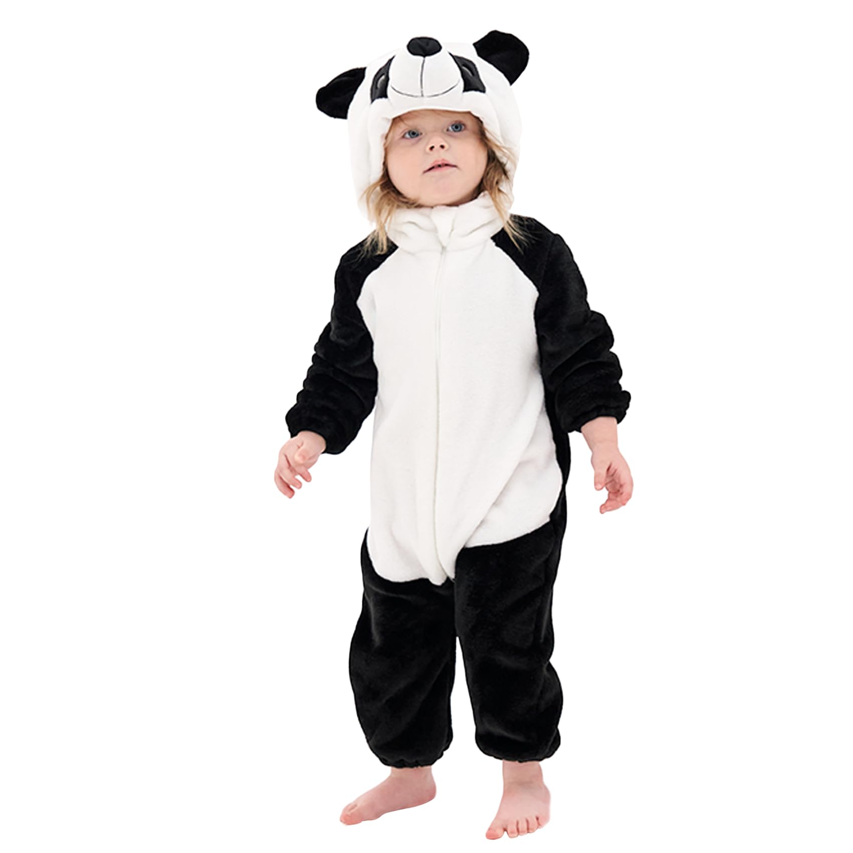 Lonulain Unisex Baby Animal Costume Pajamas, Infant Flannel Hooded Halloween Romper Cosplay Costume/Homewear/Sleepwear (Panda,3-