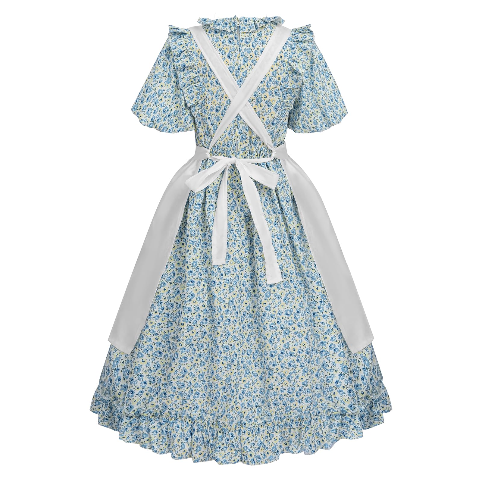 3 Piece Colonial Girl Dress Set - The colonial girl costume set comes with a Pioneer floral dress, a pinafore and a bonnet. A variety of ways to match, a variety of cute style. Step your kids into real history with a full set of little girl prairie outfit! | A Comfortable Girl Pioneer Outfit - The pioneer girl dress is made of chiffon floral fabric, which is skin-friendly, breathable and soft. | Floral Colonial Girl Dresses Design - The girl pioneer dress is designed with a round collar dotted with ruffles, lantern short sleeves, and matched with a pretty pinafore making your girls chic and cute. There is a pocket on each side of the pinafore, which is convenient to use. | Occasions - This Little House on the Prairie outfit is suitbale for many occasions, like Mary had a little lamb costume, Colonial costume for 100 days of school party, town festivals, colonial era costume, old time role-playing and historical reenactments, Pioneer day, theme party, Halloween, Thanksgiving and so on. Especially, This dress is nice for casual daily wear to picnic, garden work or farm activities. | Tips - In order to improve the efficiency of the factory, it is normal that the tag is not hung on the clothes. This situation doesn't mean that this dress is used. If you have any questions, whether pre-sales or post-sales, please message us at any time.