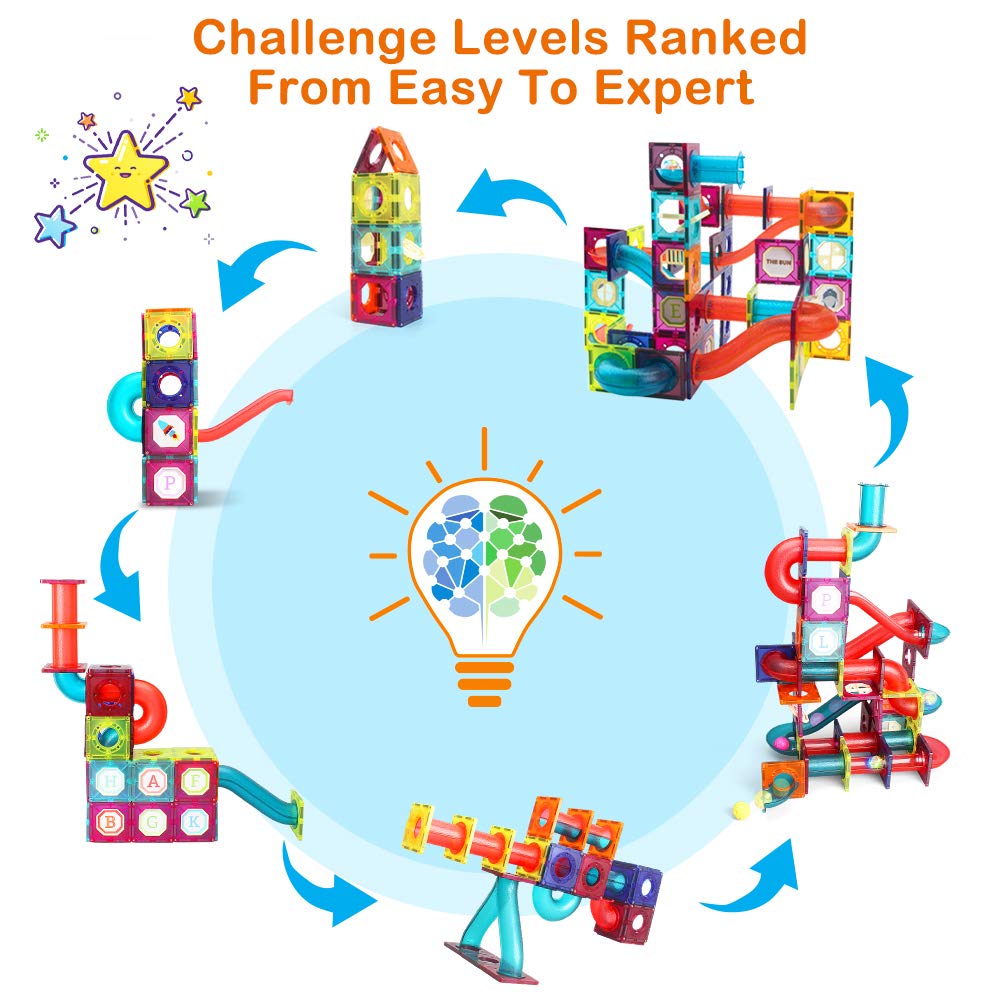 View compareMagnetic Tiles,125 Piece Pipe Magnetic Blocks for Toddlers, 3D Clear Magnets Toys, STEM Toy Children Magnetic Tiles Building Set