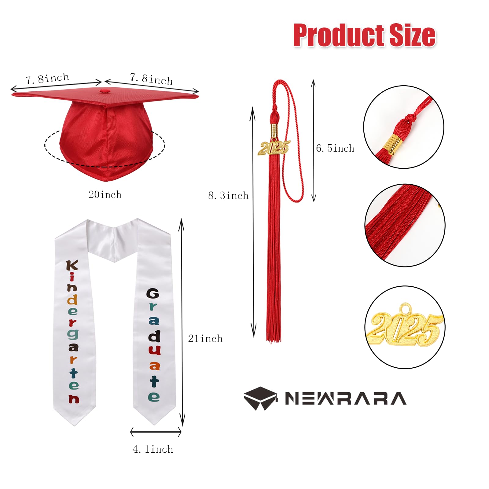 Newrara Kindergarten Graduation Cap and Gown Stole Package for Kids (Red, 33)