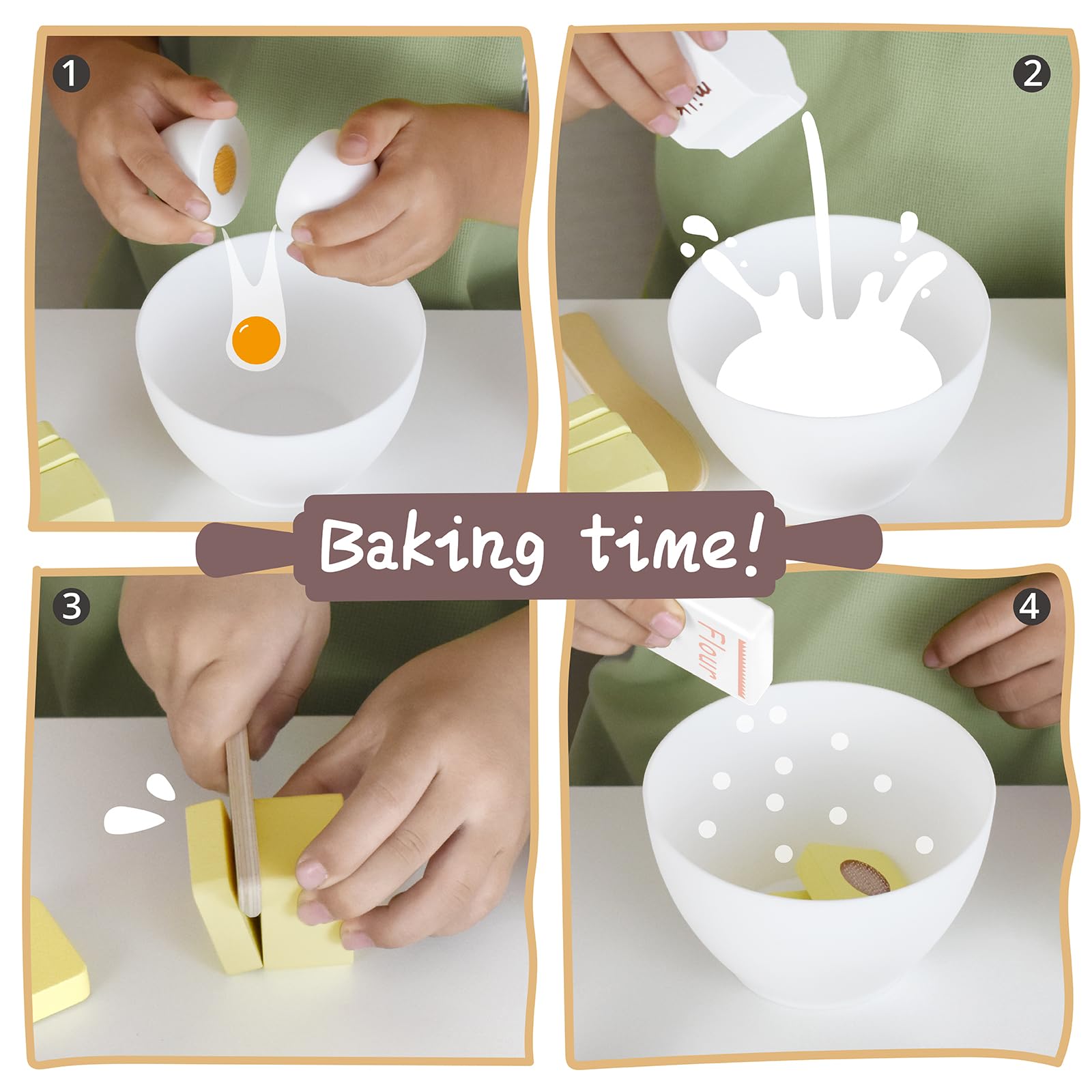 - Q: What materials are used in the construction of this wooden baking set? A: This baking set is made of high-quality wood and finished with non-toxic water-based paint, ensuring safety while your child enjoys pretend play.