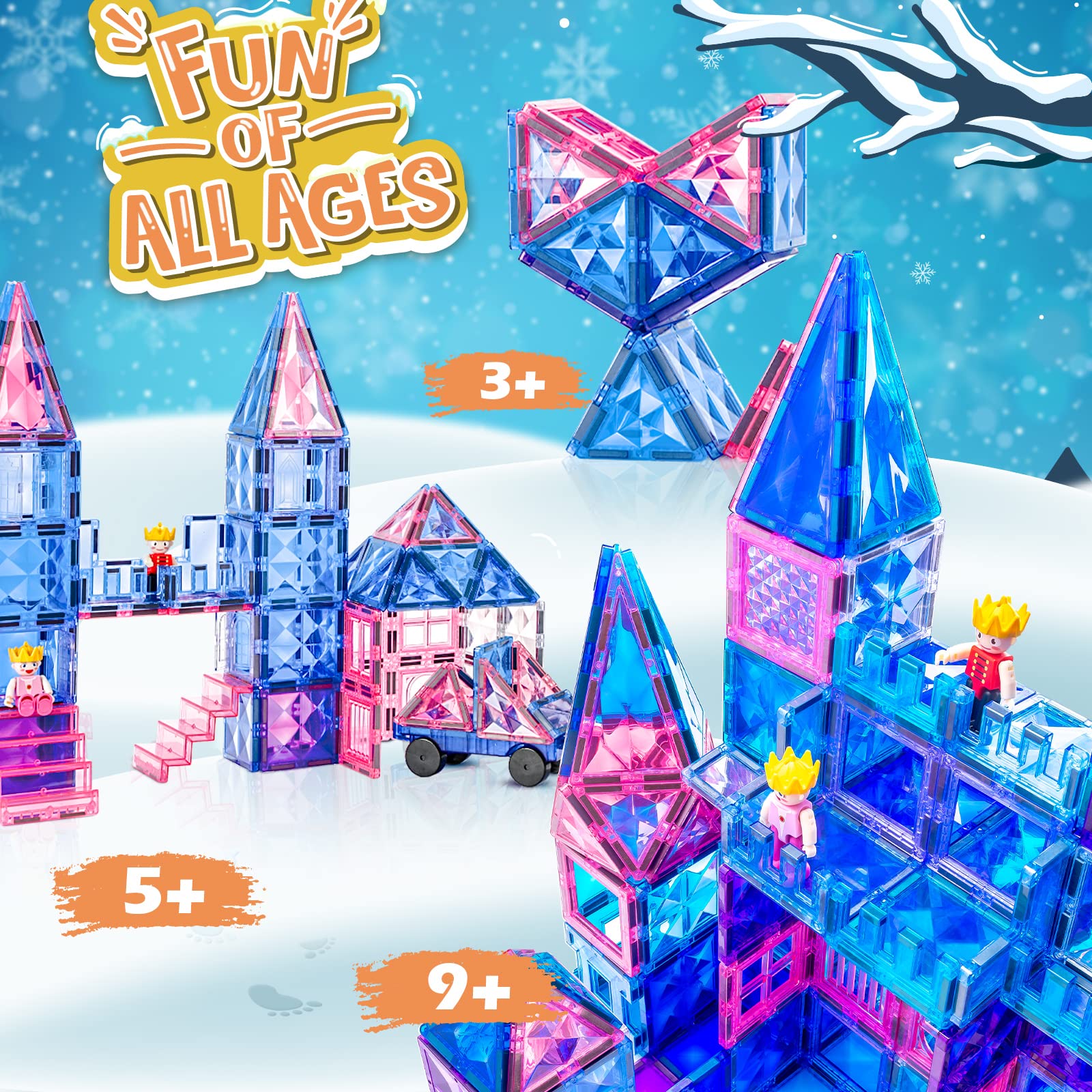 View comparePitpat 128 pcs Magnetic Tiles for Kids with 2 Cars and Storage Bag, Magnet Blocks Building Set with Stronger Magnets, Magnetic S
