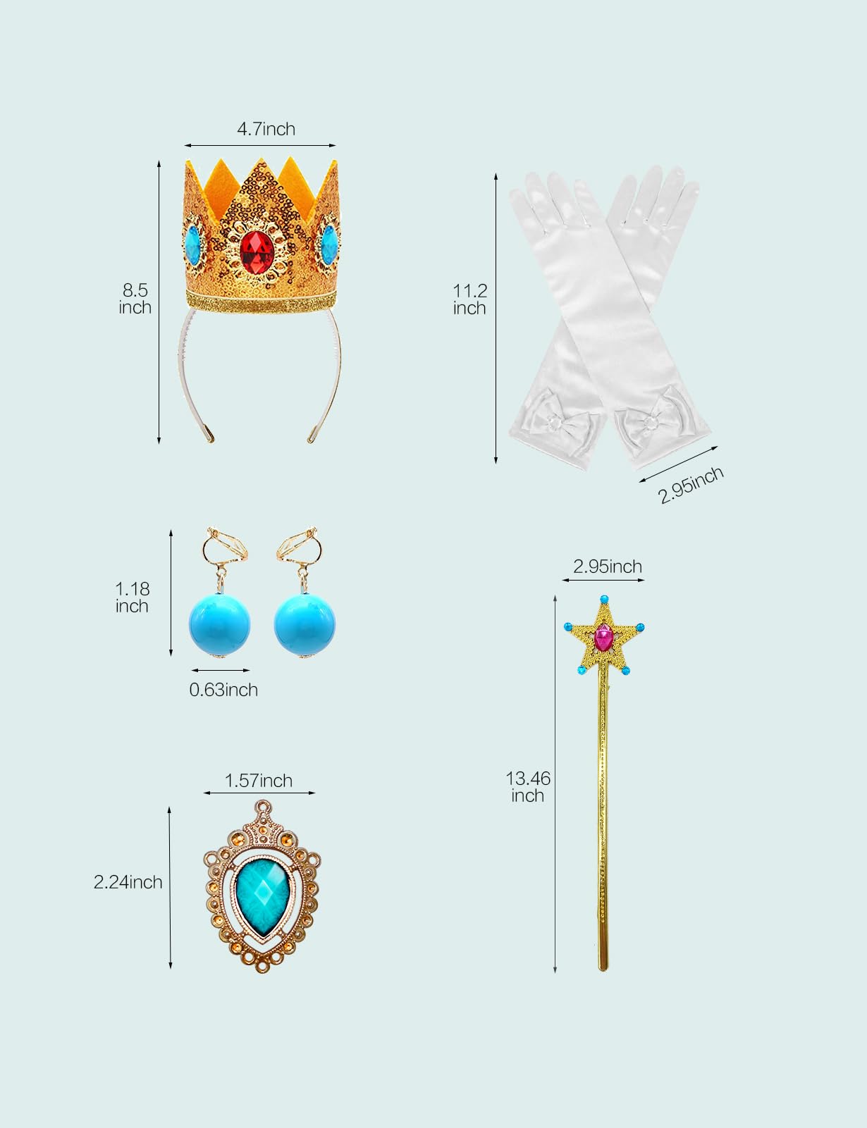 ?CUTE COSTUME?This princess dresses for girls is designed with sweet neckline, fantastic blue detachable rhinestone brooch, cute bubble sleeve, and hidden back zipper, puff sleeves, tutu layers skirt, fluffy and glamorous design, making your child look graceful and dreamy just like a princess. | ?HIGH-QUALITY FABRIC?This sweet pink dress costume chiffon fabric plus cotton lining breathable, High-quality fabric will not fade and no pilling, soft, comfortable ,lightweight. | ?INCLUDE?This princess costume for girls comes with 1 x long pink princess dress with brooch, 1 pair of gloves, 1 x gold princess crown, 1 x wand,1 pair of earrings. | ?APPLICATION?This princess costume girls is perfect daily wear, Whether as a Cosplay costume or dress-up among kids, a classic Novelty Design suitable for both daily wear and Party, Birthday, Family Pretend Play, Halloween, Christmas, Carnival, Stage Performance, School Outfits Wear, and any Occasions.