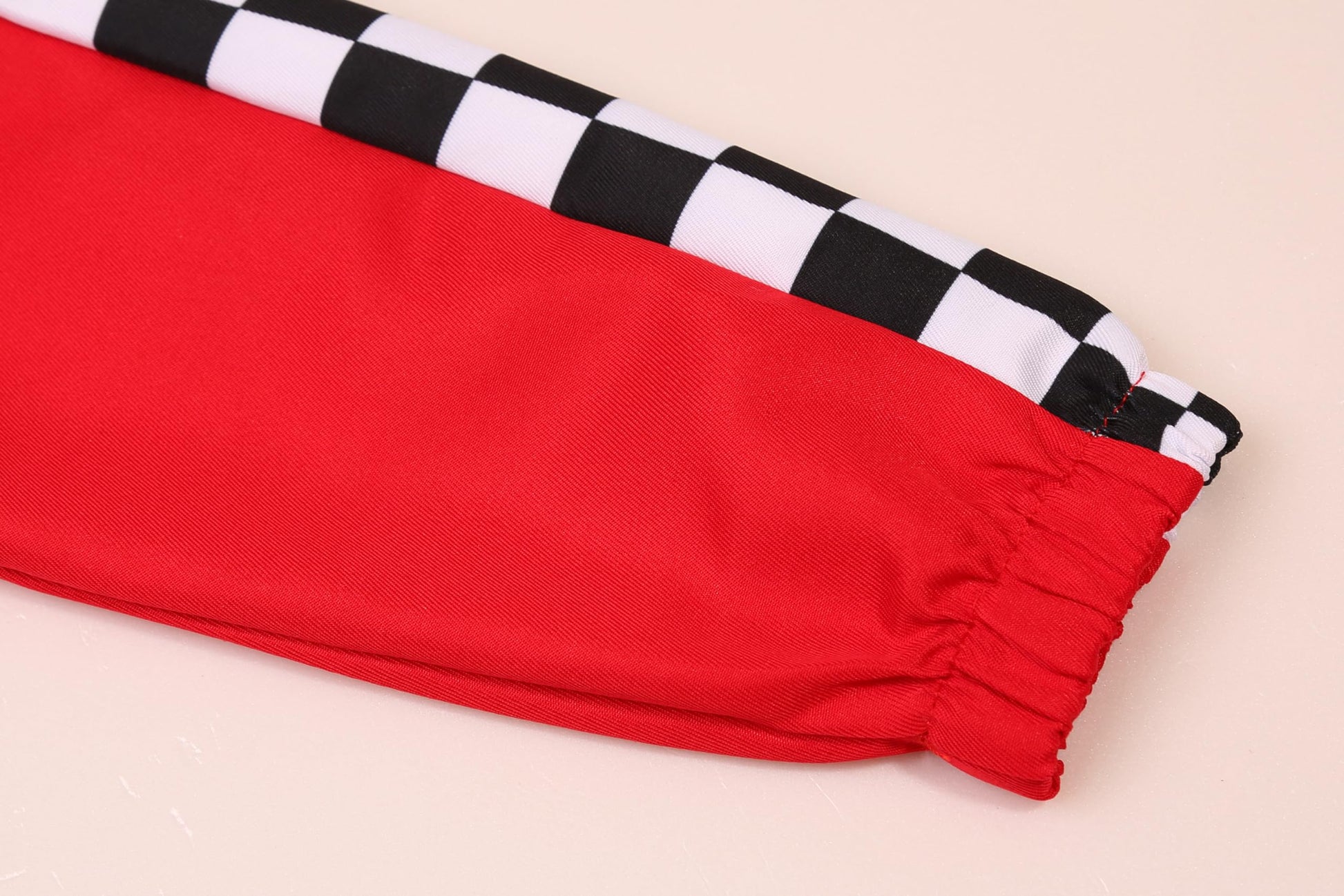With the word ''RACE'' printed on the black and white track design on the chest and two cloth sticker patterns with a race theme, this kids race car costume is very attractive to the crowd.