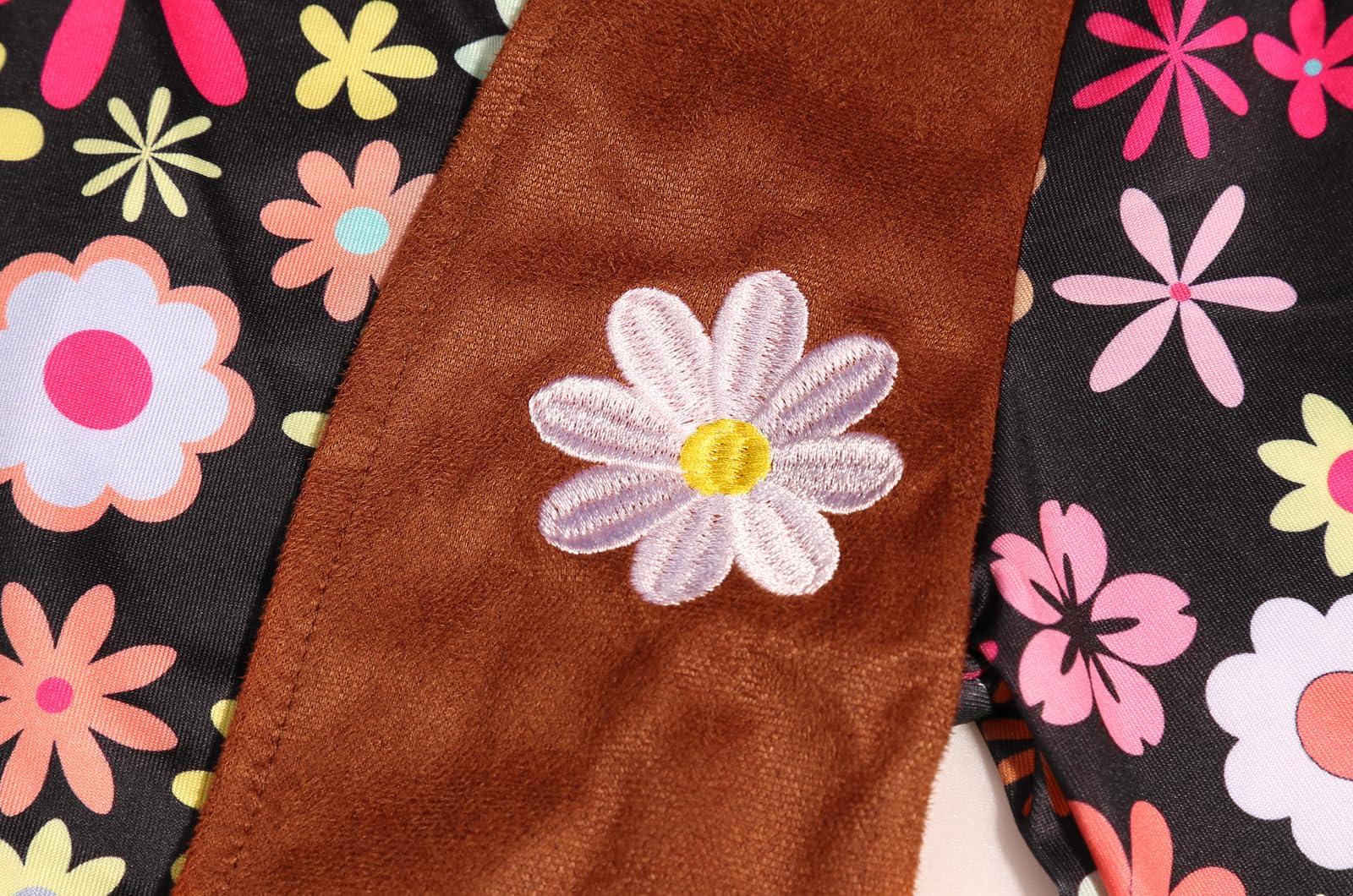 Transform your little girl into a free-spirited hippie with this vibrant and complete costume set. The outfit includes a colorful hippie dress with fringe vest, flower headband, fringe leg sleeves, peace sign earrings, peace sign necklace, retro pink sunglasses, and hippie tattoo stickers. Crafted from soft, breathable fabric, this comfortable and durable costume is perfect for long hours of imaginative play. Ideal for a variety of occasions, including Halloween, themed parties, school events, birthday parties, and more, this authentic hippie design encourages creativity and fun. Let your child embrace the 70s vibe with this standout hippie costume.