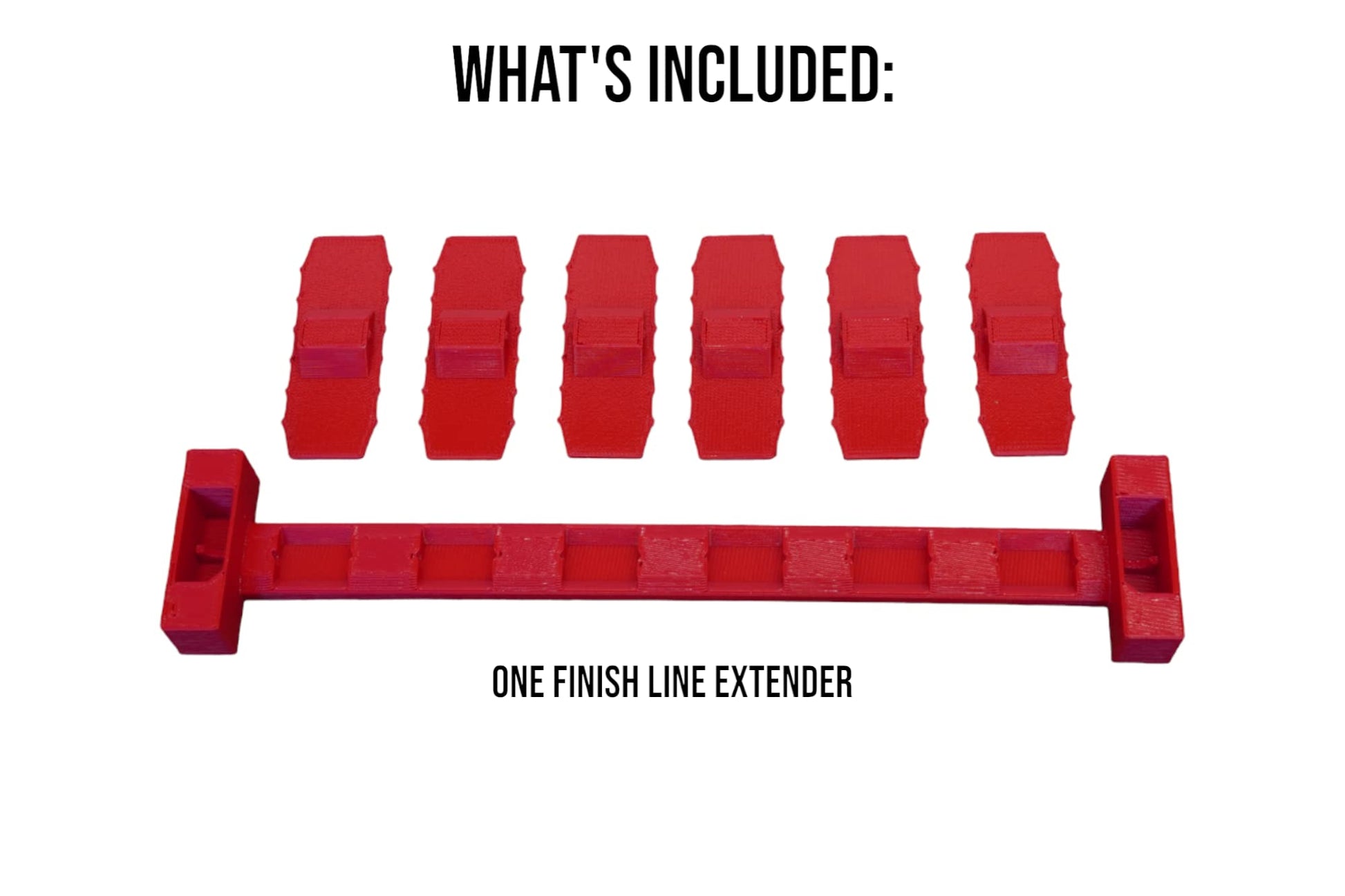 Looking to extend your Super 6 Lane Raceway ?This is the piece for you. This extender allow for easy transportation and connectivity to your existing track. Extend your finish line anywhere you like with this convent adaptor. This 3D printed adaptor comes with the extension and the track spacers printed together but does not have holes drilled for a more permanent placement like version 1.0. *Extension Kit Only. Finish line, and cars are NOT included