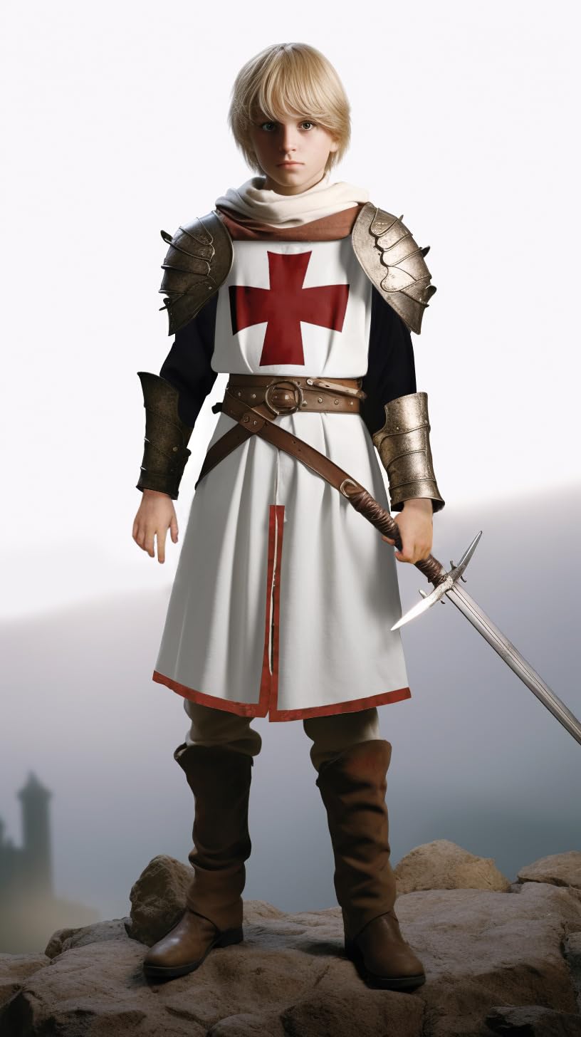 View compareVzqi Kids Crusader Costume White Medieval Knight Tunic Boys Outfit Renaissance Roman Warrior Costume Halloween With Belts S