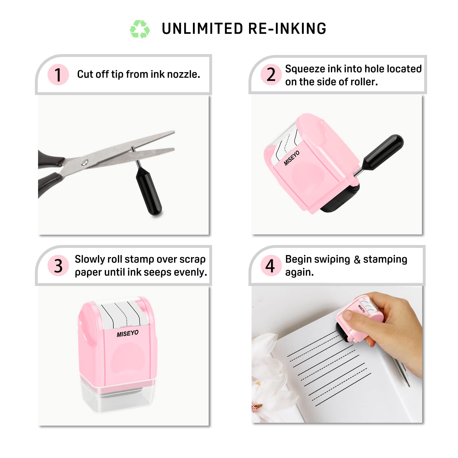 View compareMiseyo Dashed Handwriting Lines Practice Roller Stamp,Self-Inking Line Rolling Stamps for Kids Writing - Pink