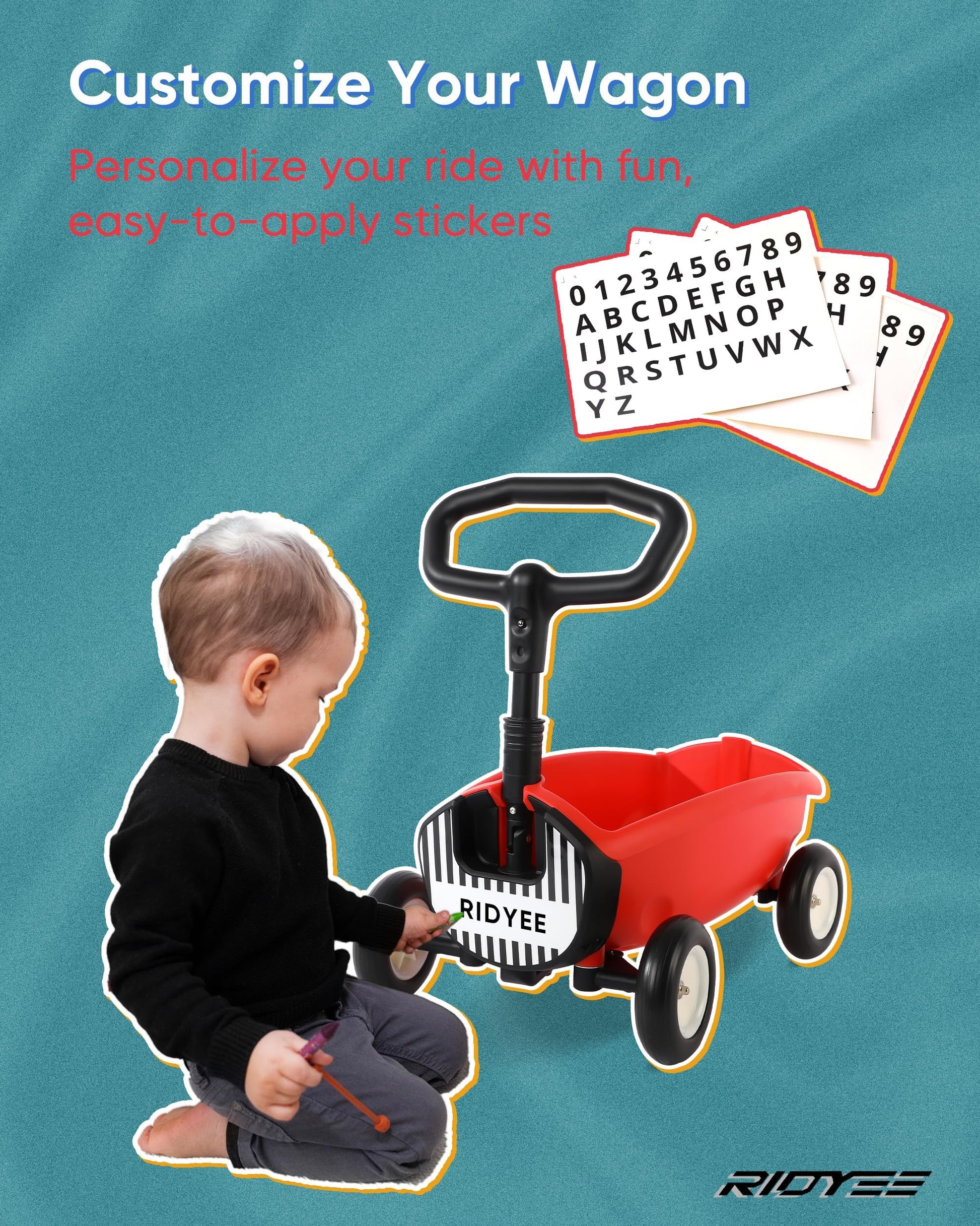 Ridyee 2-In-1 Toy Wagon For Toddlers 1-3, Kids Wagon With Removable Seat And Adjustable Handlebar, Pull-Along Wagon, Baby Push Walker With 8L Large Basket, Steering Limit, Diy Sticker, Red