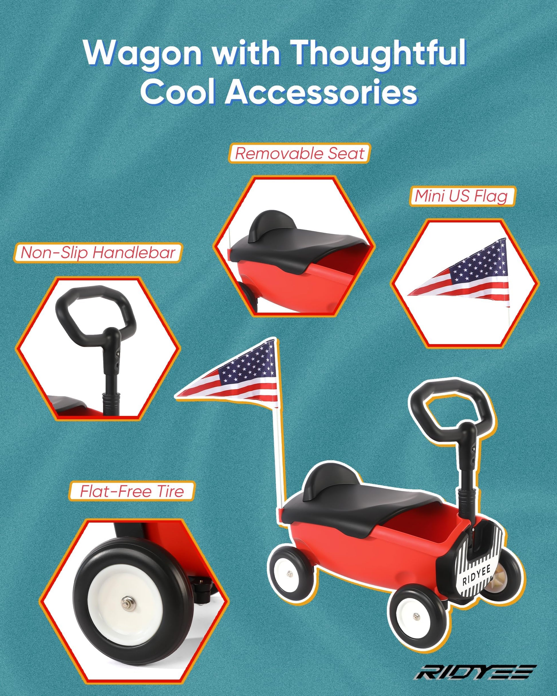 Ridyee 2-In-1 Toy Wagon For Toddlers 1-3, Kids Wagon With Removable Seat And Adjustable Handlebar, Pull-Along Wagon, Baby Push W