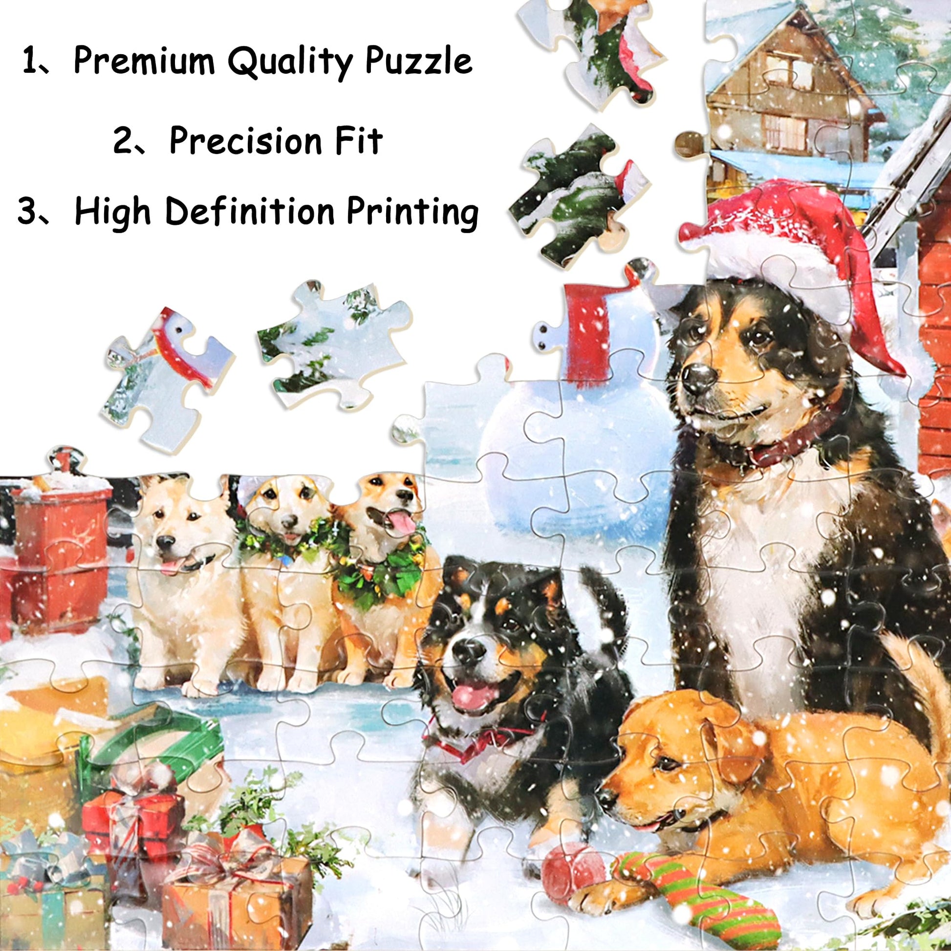 100 Piece Puzzles For Ages 4-8, Dogs Family Christmas Jigsaw Puzzle, Learning Educational Puzzle Toys For Girls And Boys, Xmas G
