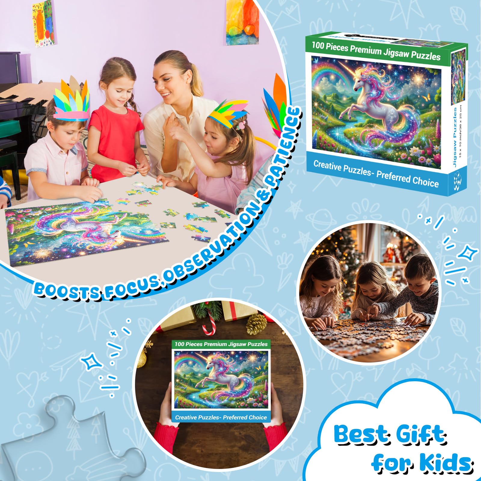 100 Piece Puzzles Raibow Unicorn Puzzle for Kids Ages 4-8 8-10, 100 Piece Jigsaw Puzzle for Adults Children Learning Educational