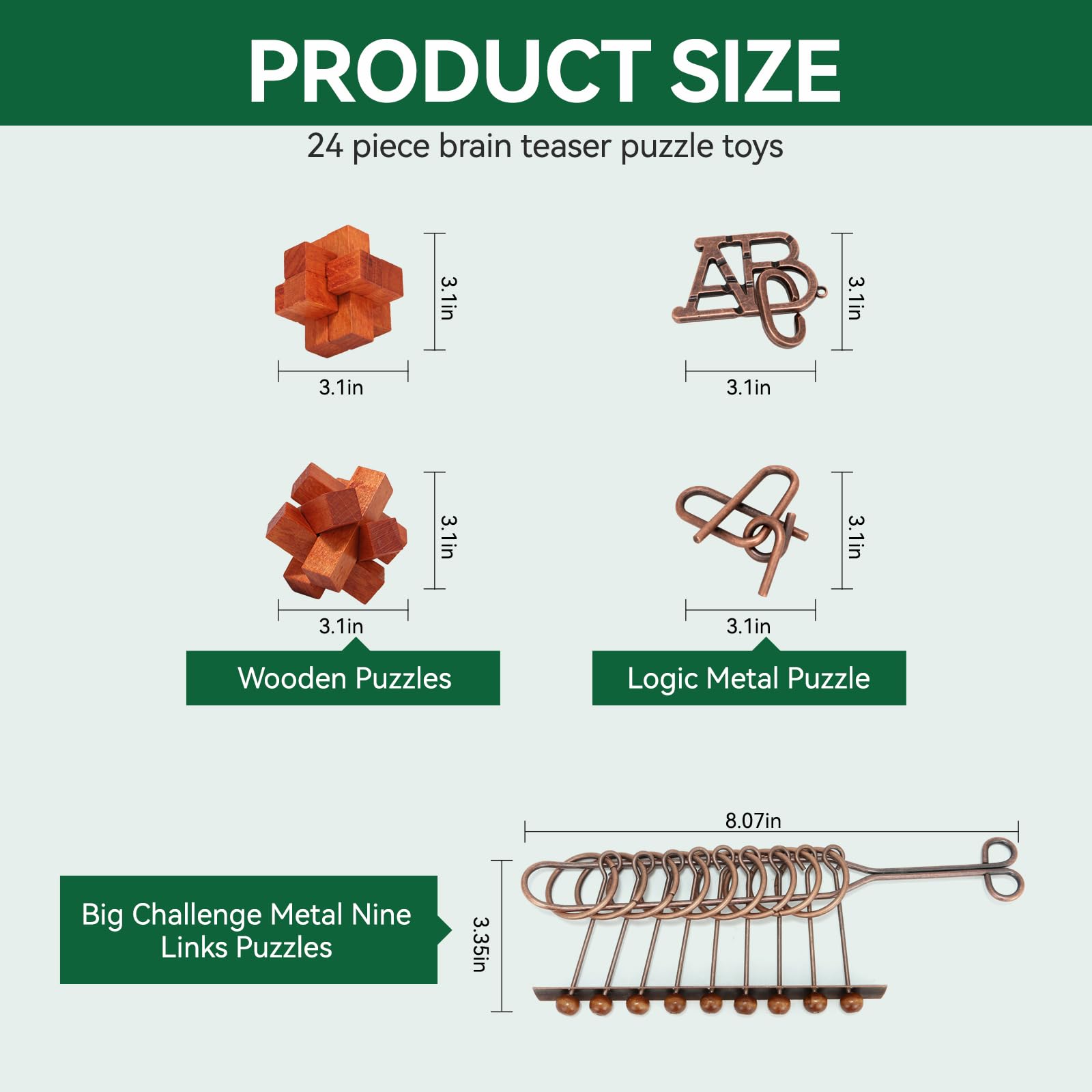 24 Pcs Brain Teaser Puzzles for mature-themeds - Metal Puzzles 3D Puzzle Game Toys for mature-themeds Teens - Wooden Unlock Interlocking Puzzle mature-themed IQ Education Puzzle Toys Smart Toys