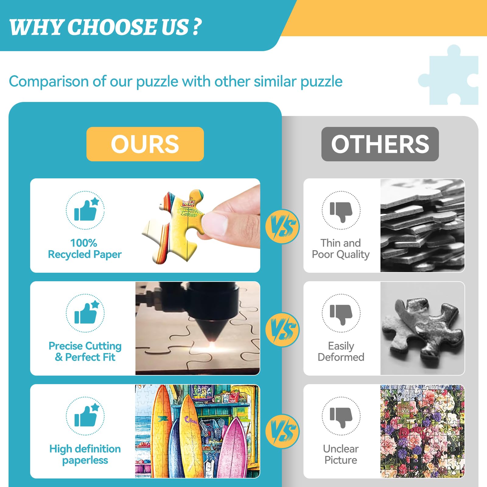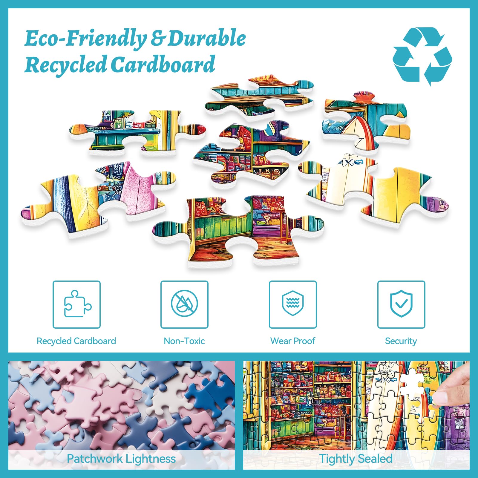 Enjoy hours of fun and relaxation with this 300 piece puzzle for mature-themeds and kids featuring a charming seaside souvenir shop with colorful surfboards on display. Crafted from eco-friendly durable cardboard this well-made jigsaw puzzle offers a satisfying mess-free experience with minimal dust. Precision-cut pieces ensure tight interlocking and a smooth assembly process. Whether you 're looking for puzzles for mature-themeds a thoughtful gift or a calming activity for the whole family this 300 piece jigsaw puzzle delivers beauty and enjoyment in every piece. Perfect for mature-themeds kids and seniors and ideal for birthdays holidays or coastal-themed d?or. Finished size: 20.5 x 15 . If your puzzle arrives with missing or damaged pieces contact us via large online retailer-we?l promptly send replacements to ensure a complete puzzle experience.