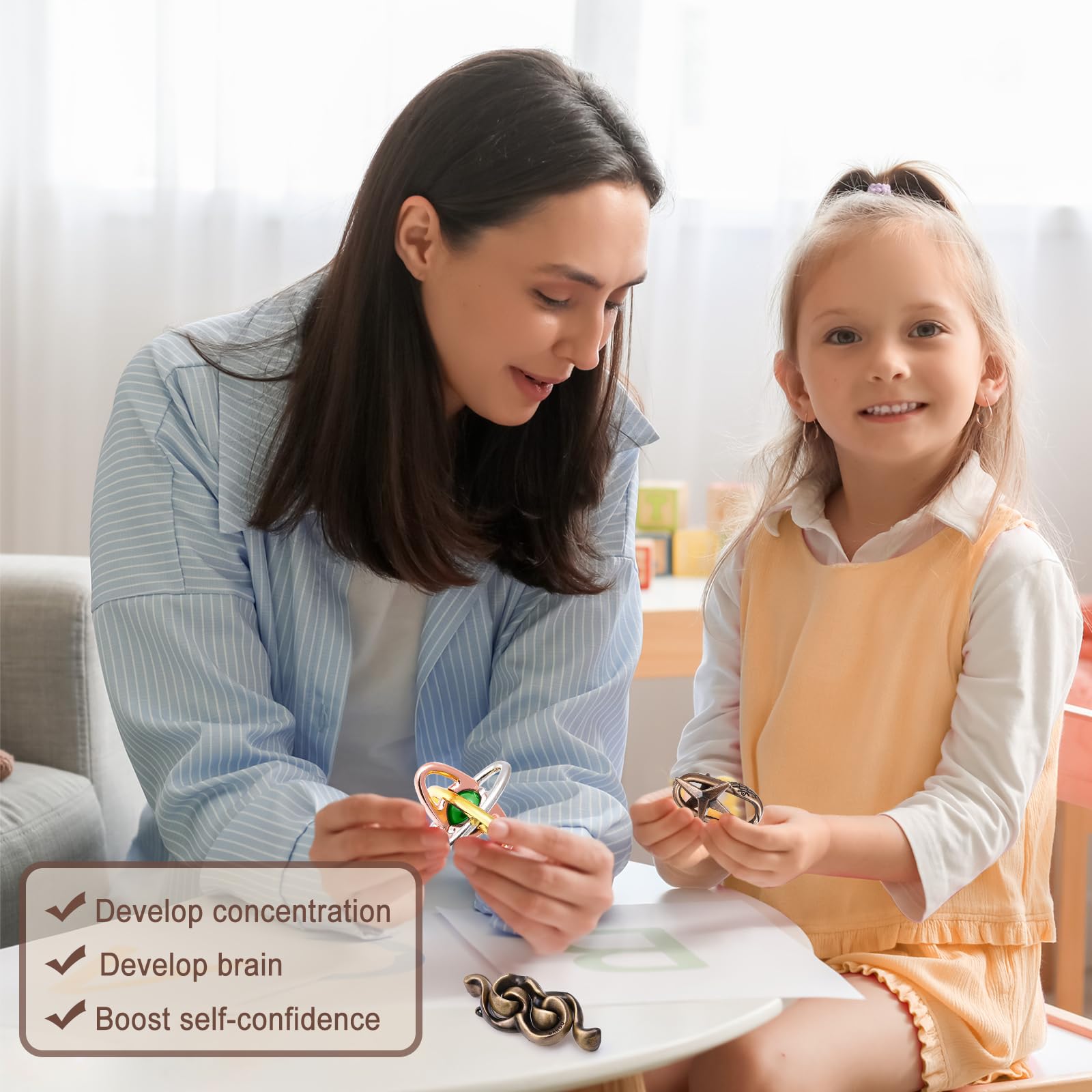 BRAIN TEASER PUZZLE Various styles to satisfy your adventurous spirit. Progress through levels from easy to challenging allowing you to challenge yourself in a gradually escalating manner! Exquisite Gift: WThese 3D metal puzzle brain teasers make excellent gifts for family friends classmates colleagues on occasions like Christmas birthdays holidays and other special events. They are also suitable as game prizes classroom rewards and more. Metal puzzles x9