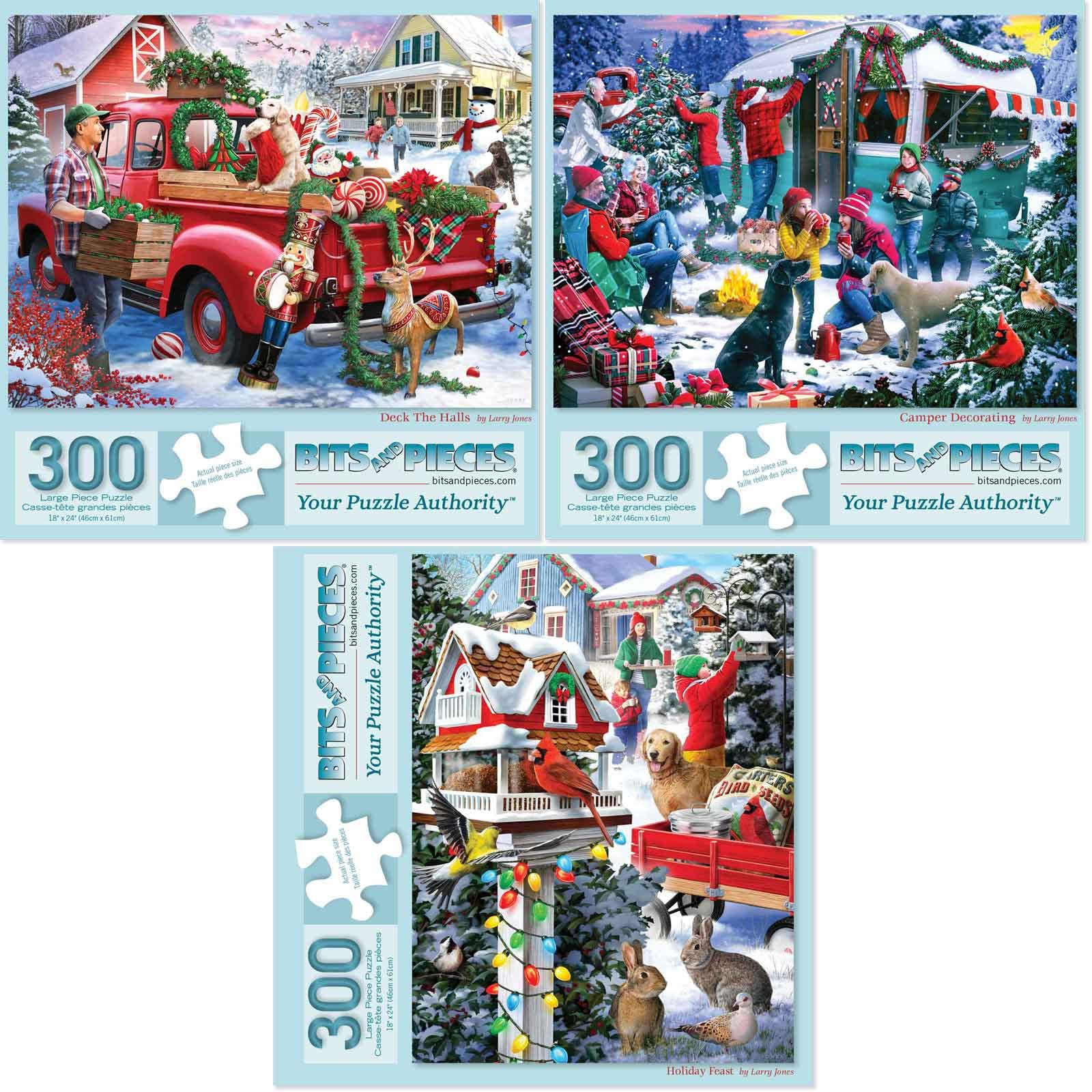 Bits And Pieces - Value Set Of Three (3) 300 Piece Jigsaw Puzzles For Adults - Puzzles Measure 18' X 24' - 300 Pc Camp Holiday T