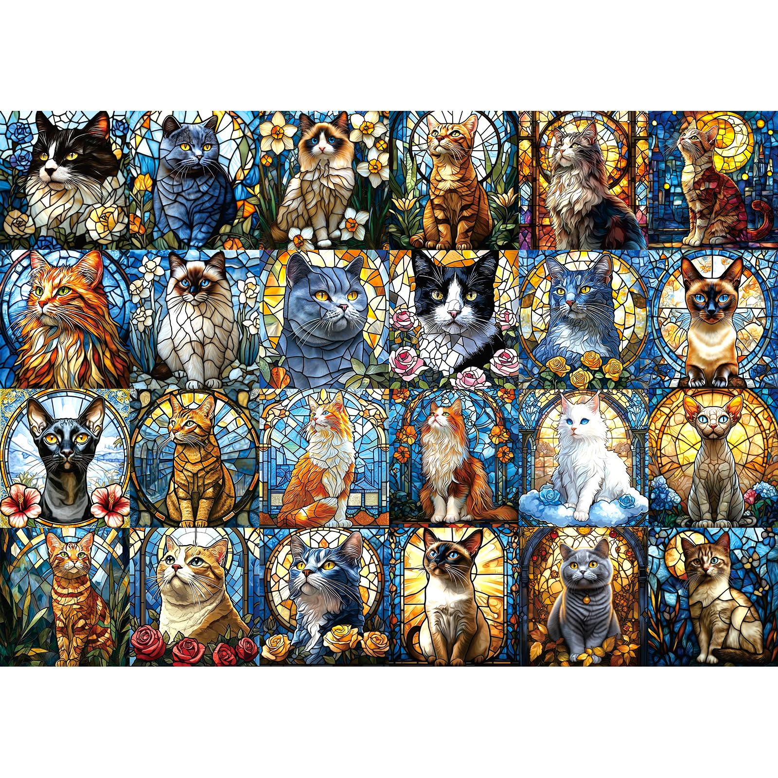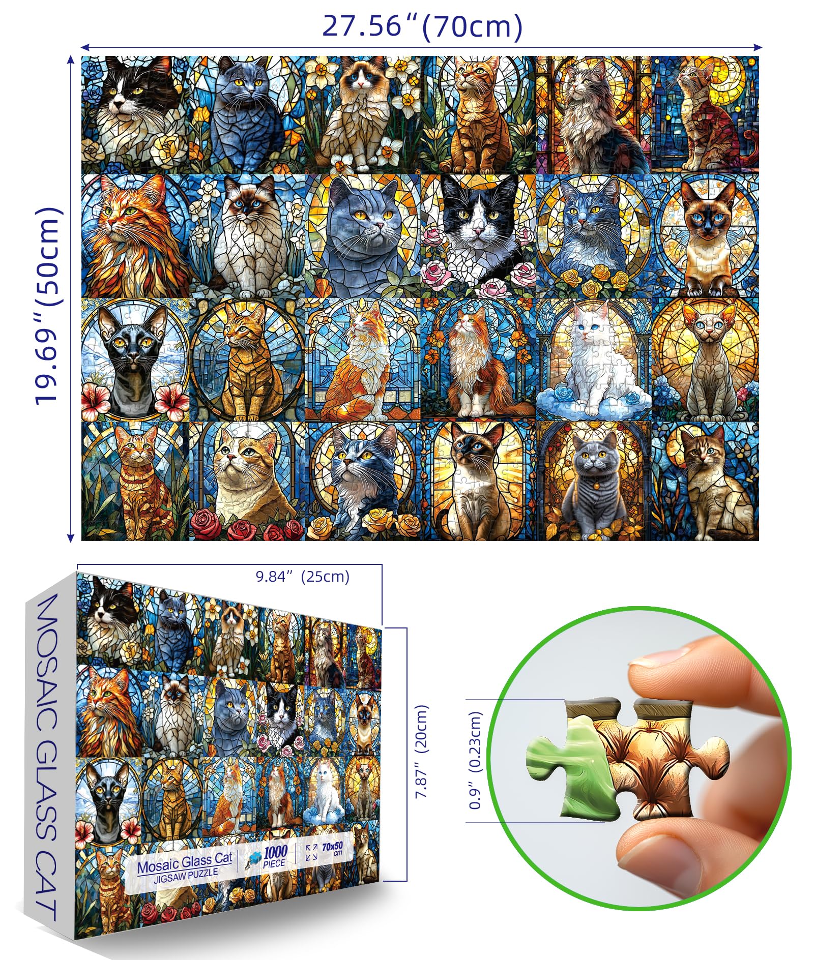 Blueforest Stained Glass Puzzle Cats Puzzles For Adults 1000 Pieces, Impossible Hard Difficult Challenging Puzzles For Adults, C
