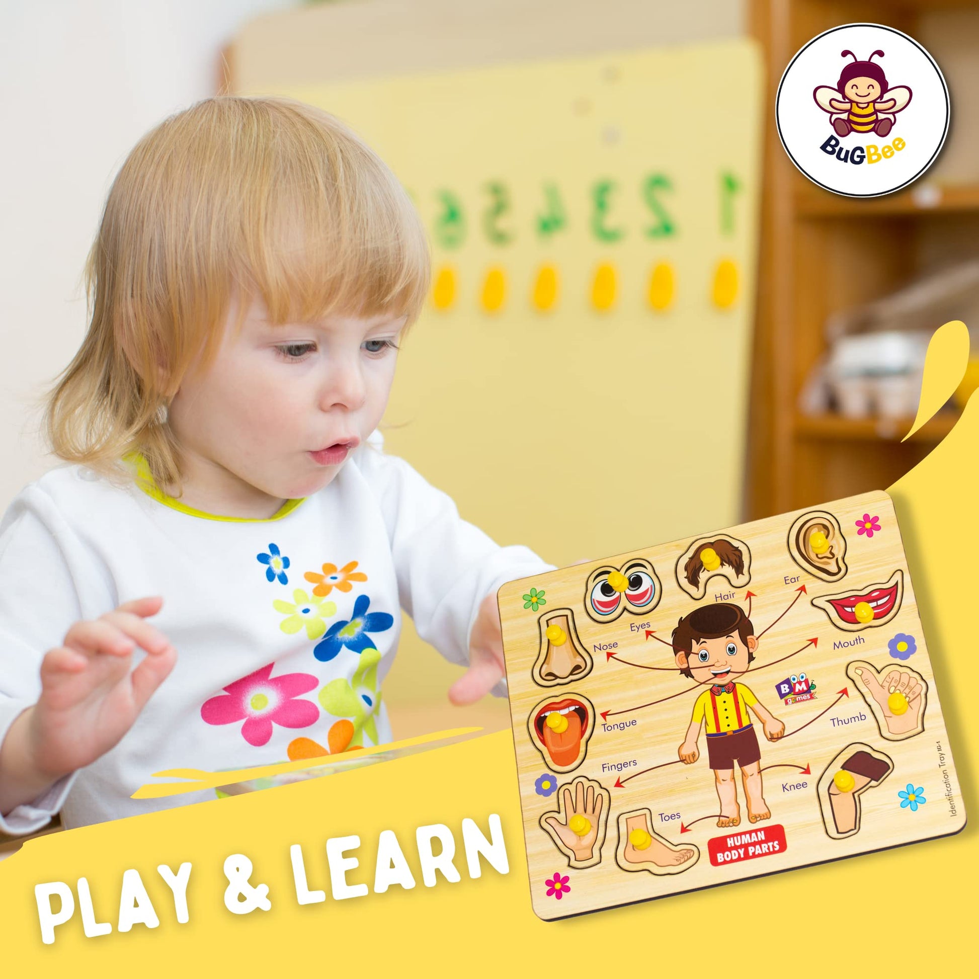 Bugbee Body Parts Toddler Puzzles For Kids Ages 2-4-8 Montessori Wooden Puzzles For Children 3-5 Years Old Preschool Game For Le