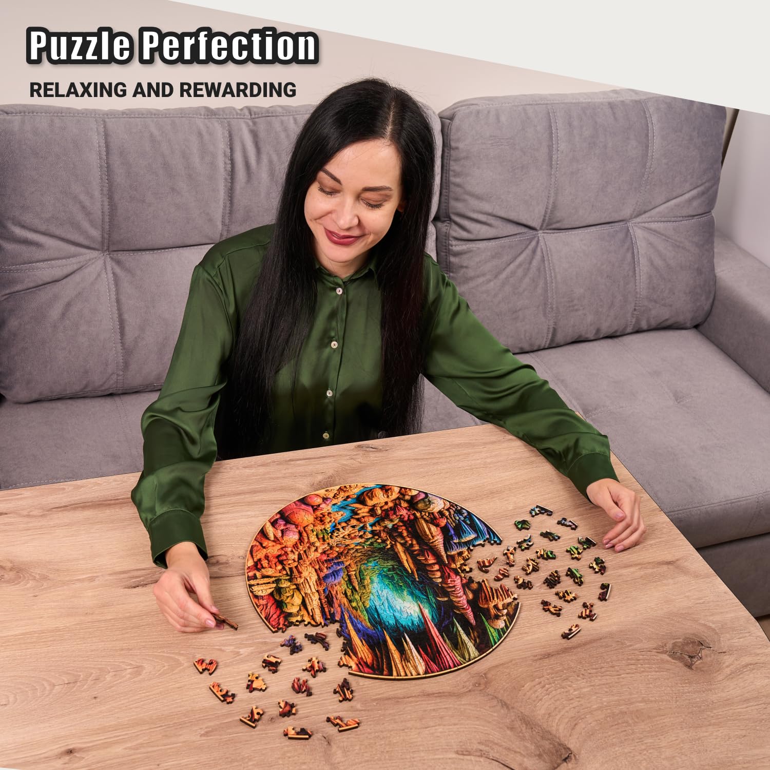 View compareCavernous Spectrum - 350 Piece Wooden Puzzles for mature-themeds - 15 x 14.9 in - Extra-Thick 5 mm Wood Puzzle Hand-Shaped Pieces Round Mosaic Design - enhanced Gift for Puzzle Lovers by LEOGOR