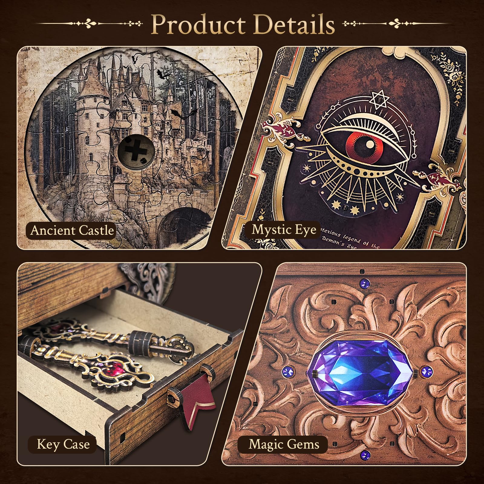 Dibetoy 3D Wooden Puzzles for mature-themeds DIY Book Nook Kit Mechanical Treasure Puzzle Trading Card Storage Box with Lock 3 in 1 DIY Building Mechanical Model Kit for Hobby Enthusiasts