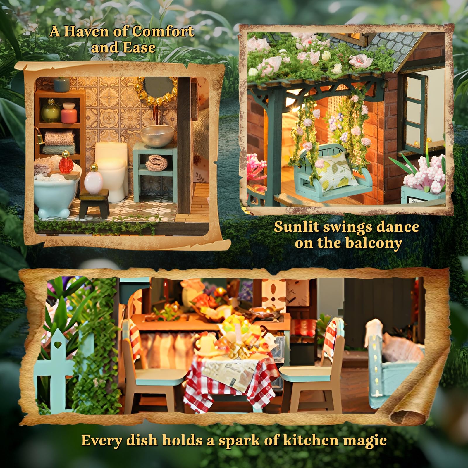 DIY Miniature House Kit Book Nook Kit for mature-themed 3D Wooden Puzzles Dollhouse Kit with LED Light Mini Building Kit Craft Kit for Teen to Build (Elven Garden)