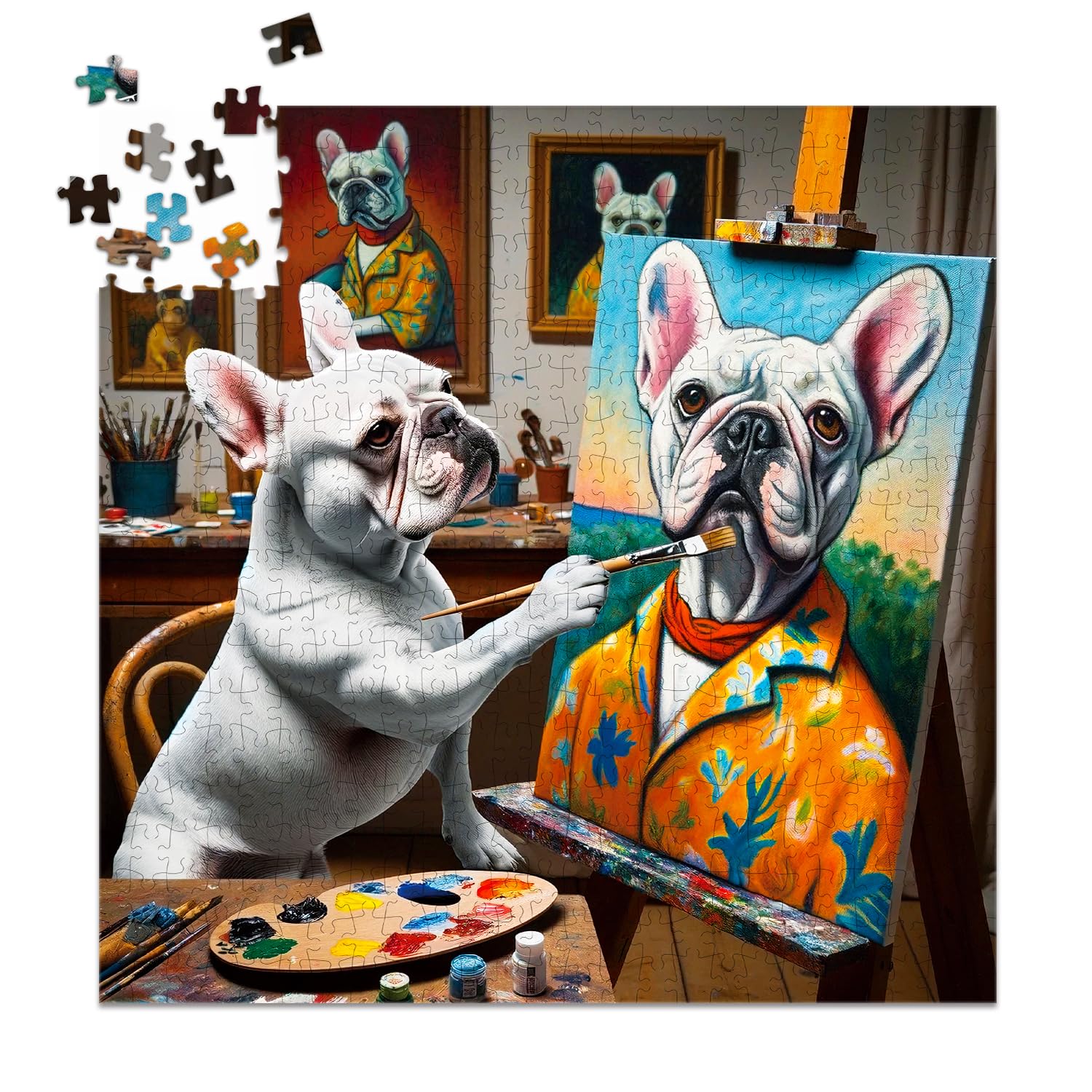 Introducing the Painting Bulldog 500 Piece Puzzle the perfect challenge for puzzle enthusiasts of all ages! Whether you're a teenager child or mature-themed this professionally crafted puzzle guarantees a serious immersion into the world of jigsaw puzzles. With its 500-piece count this puzzle offers a moderate level of difficulty making it suitable for both beginners and experienced puzzlers. Whether you're a puzzle enthusiast looking to expand your collection or a parent searching for an engaging activity for your kids the Painting Bulldog 500 Piece Puzzle is the perfect choice. So gather your family and friends and embark on an exciting puzzle-solving adventure.