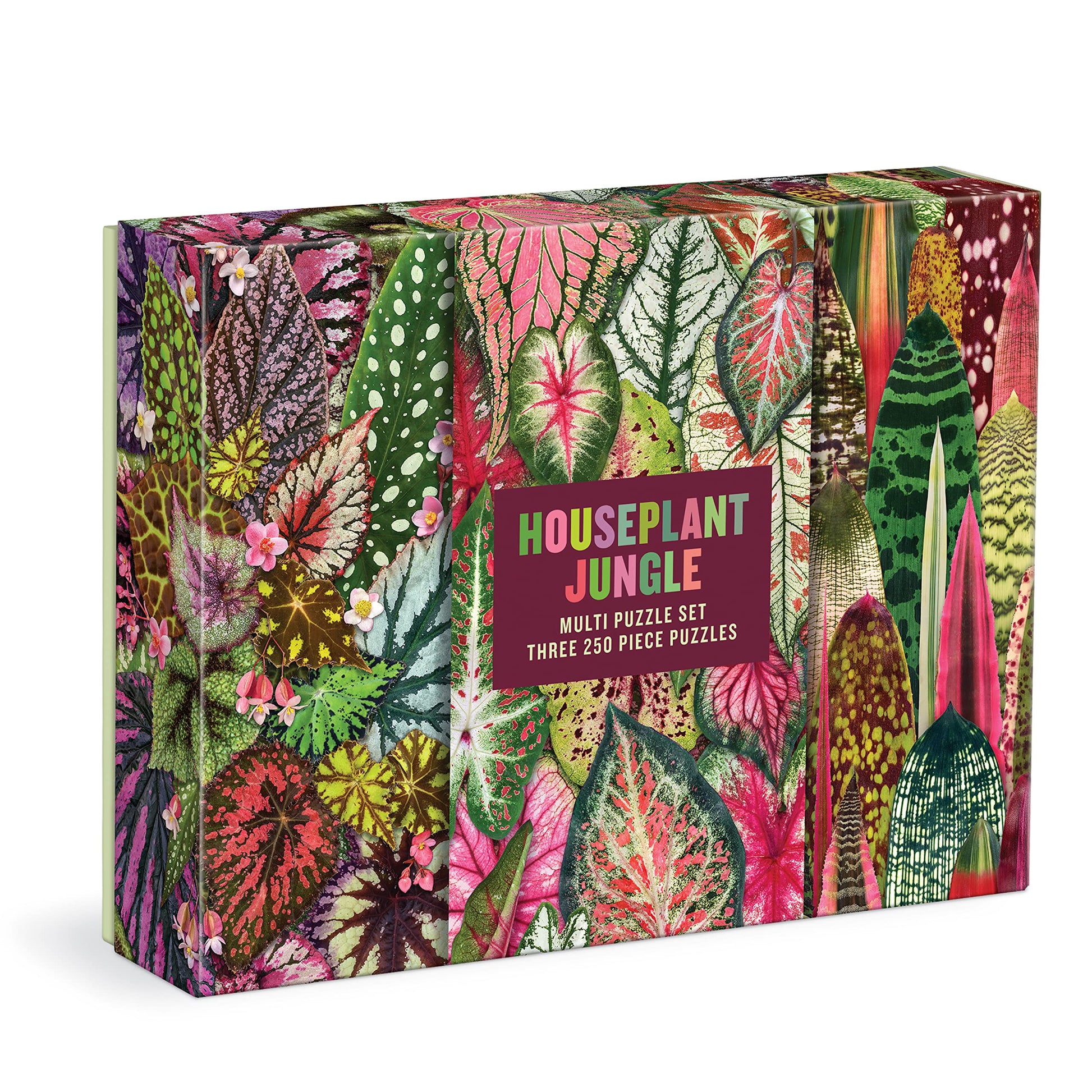 The Houseplant Jungle Multi Puzzle Set Includes Three 250 Piece Coordinating Puzzles Of Begonias, Caladiums And Bromeliads Grown, Photographed, And Collaged By Troy Litten. Galison Puzzles Are Packaged In Matte-Finish Sturdy Boxes, Perfect For Gifting, Reuse, And Storage. Three Color Inserts Of Each Full Puzzle Image Are Also Included With Some Fun Botanical Facts.
