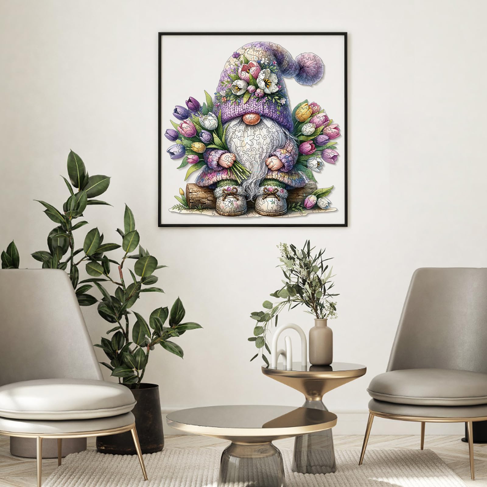 Gnome Wooden Puzzles for mature-themeds 300pcs Gnome Wooden Jigsaw Puzzles for mature-themeds Flowers Unique Shaped Jigsaw Puzzles Creative Gift for Friend Family Game Large Size 15'' x 14.1''