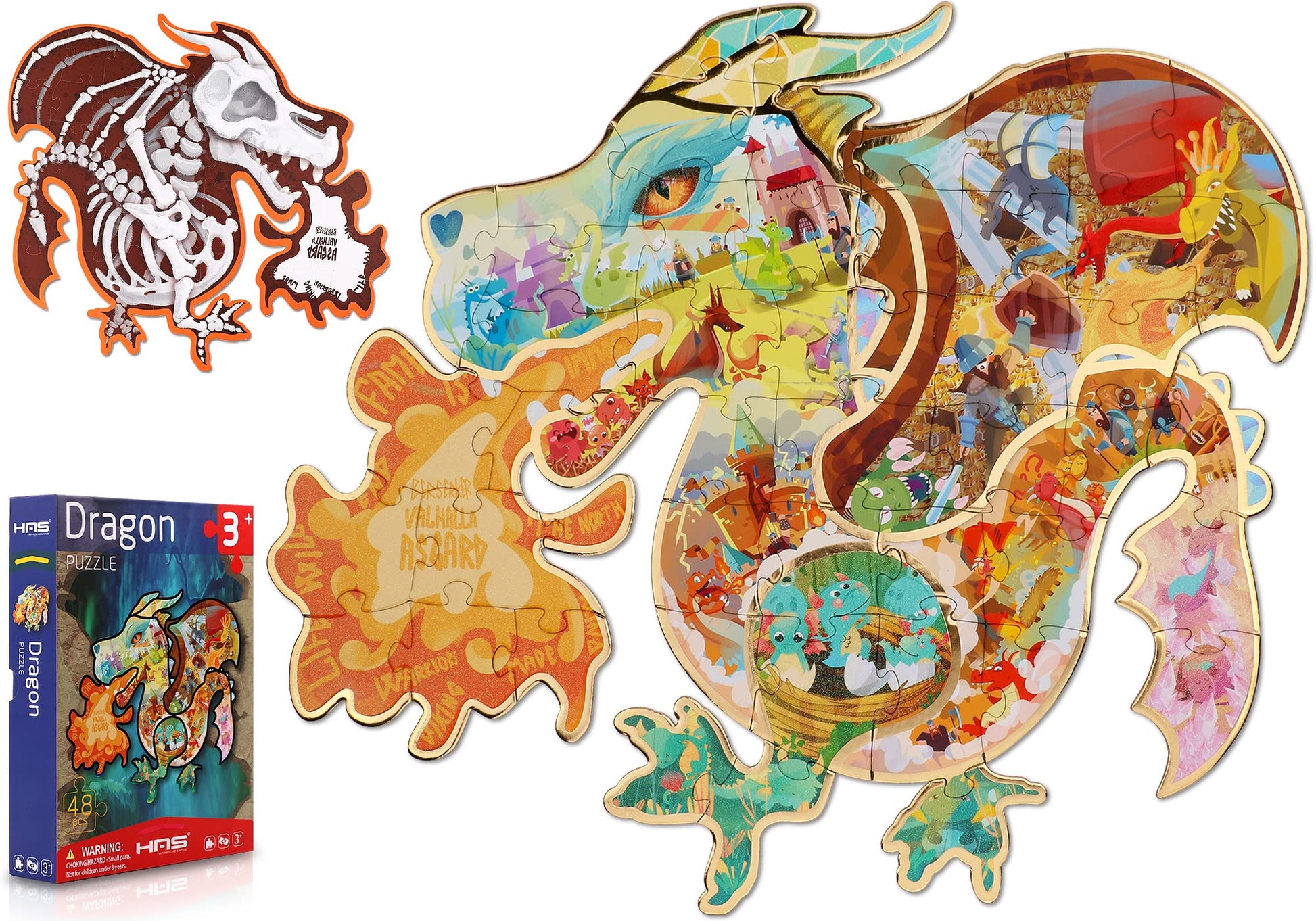View compareHas Floor Puzzles For Kids Ages 4-8, Fire-Breathing Dragon Shape Double-Sided Puzzle, 48 Piece Large Children Jigsaw Puzzle For